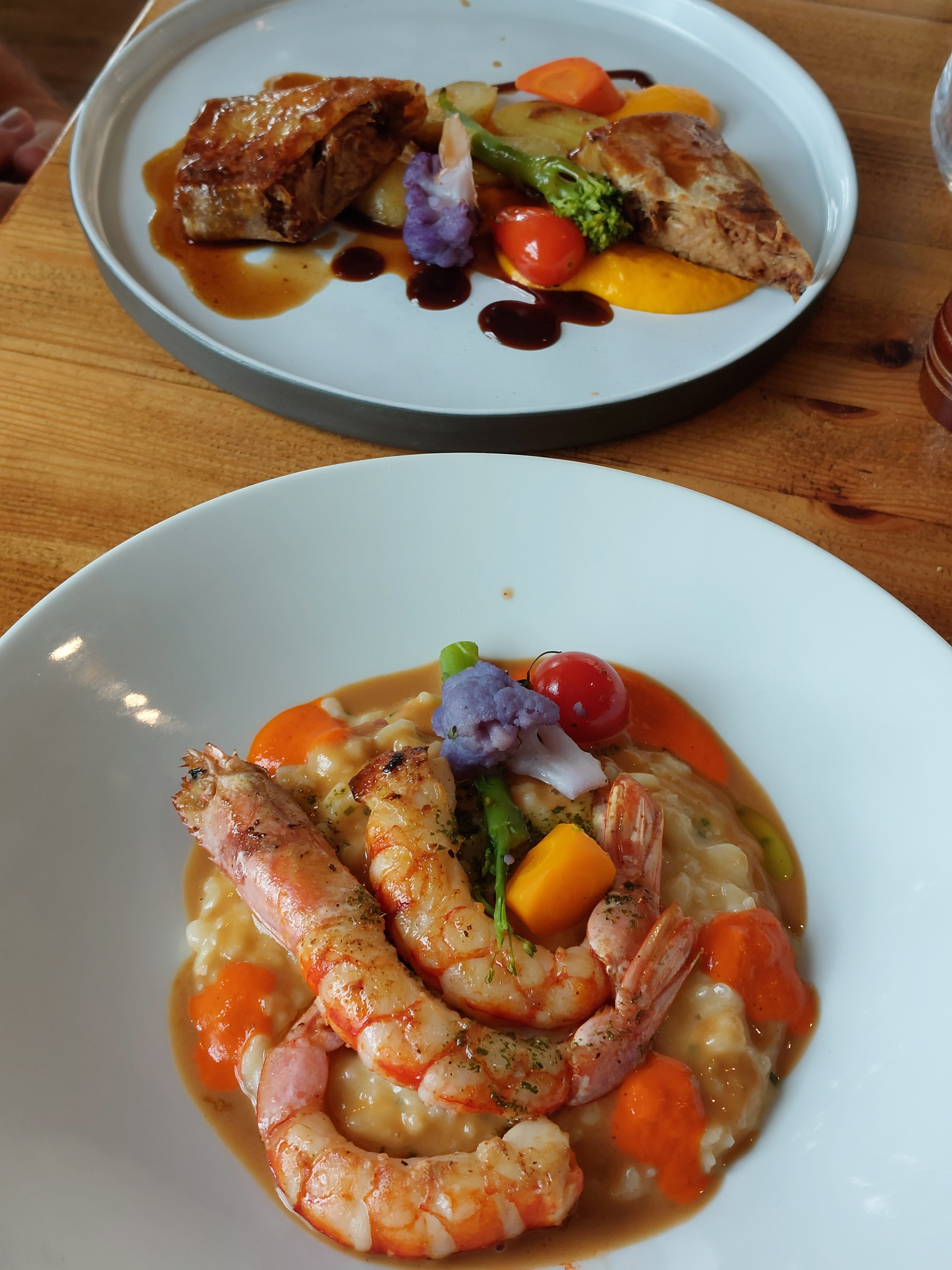 Excellent😋😋😋porc croustillant👍👍, gambas excellentes, risotto goûteux et crémeux, soufflé framboises et grand Marnier très très bon. Service efficace et serveurs sympathiques. Une très bonne soirée, à recommencer très vite
