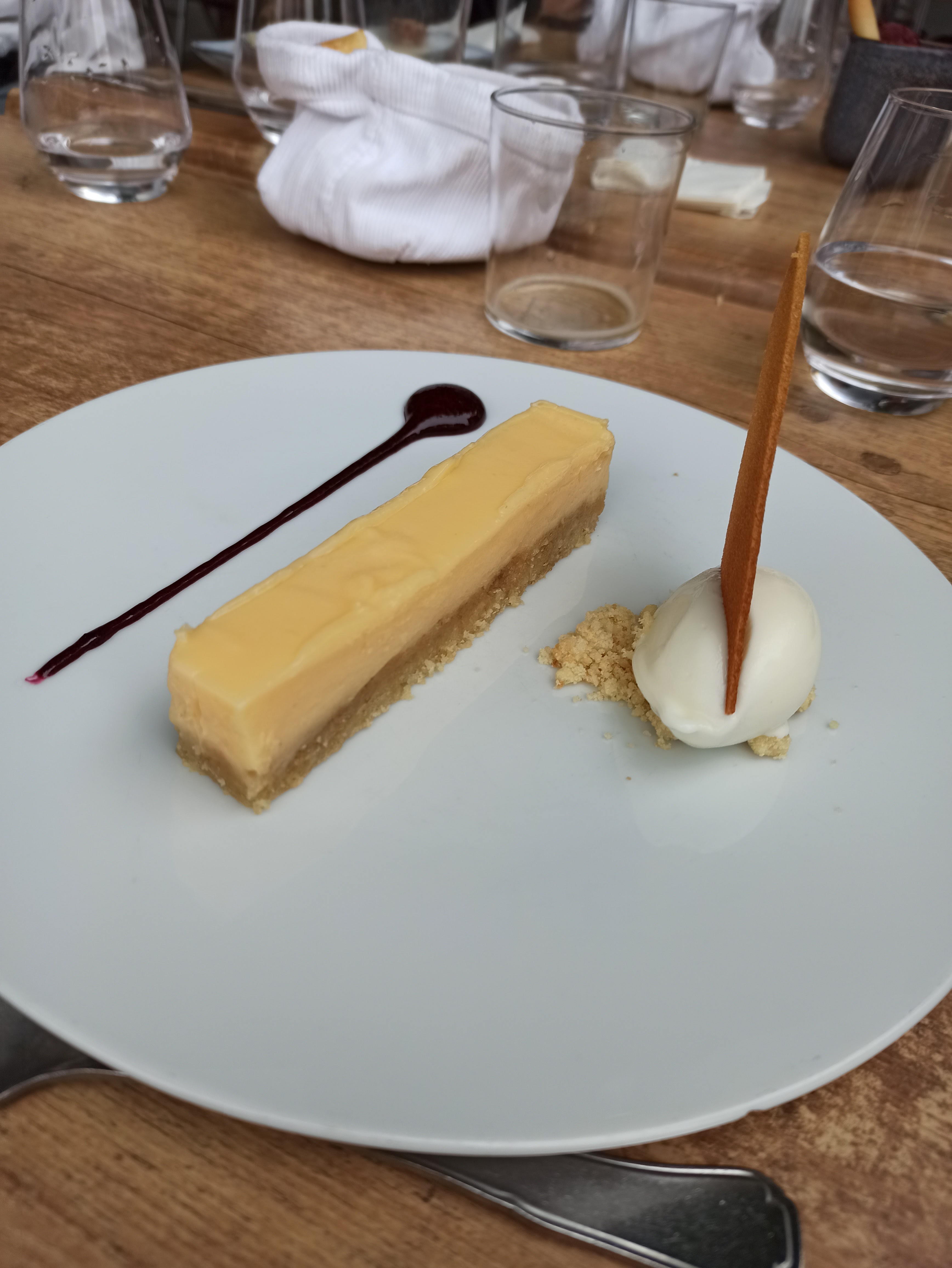 De belles assiettes goûteuses. Tarif correct. Dog frendly 👍. Serveurs très gentils. Un bémol, le dessert du menu n'a pas pu être modifié par un dessert de la carte malgré la proposition de payer un supplément à leur convenance. Dommage tout le monde n'aime pas forcément la tarte au citron ou ne souhaite pas finir sur du fromage.... Et pour se faire encaisser à la fin du repas beaucoup trop d'attente (30 min). De plus, en cette période ne pas faire de menu à emporter c'est vraiment un gros point négatif.