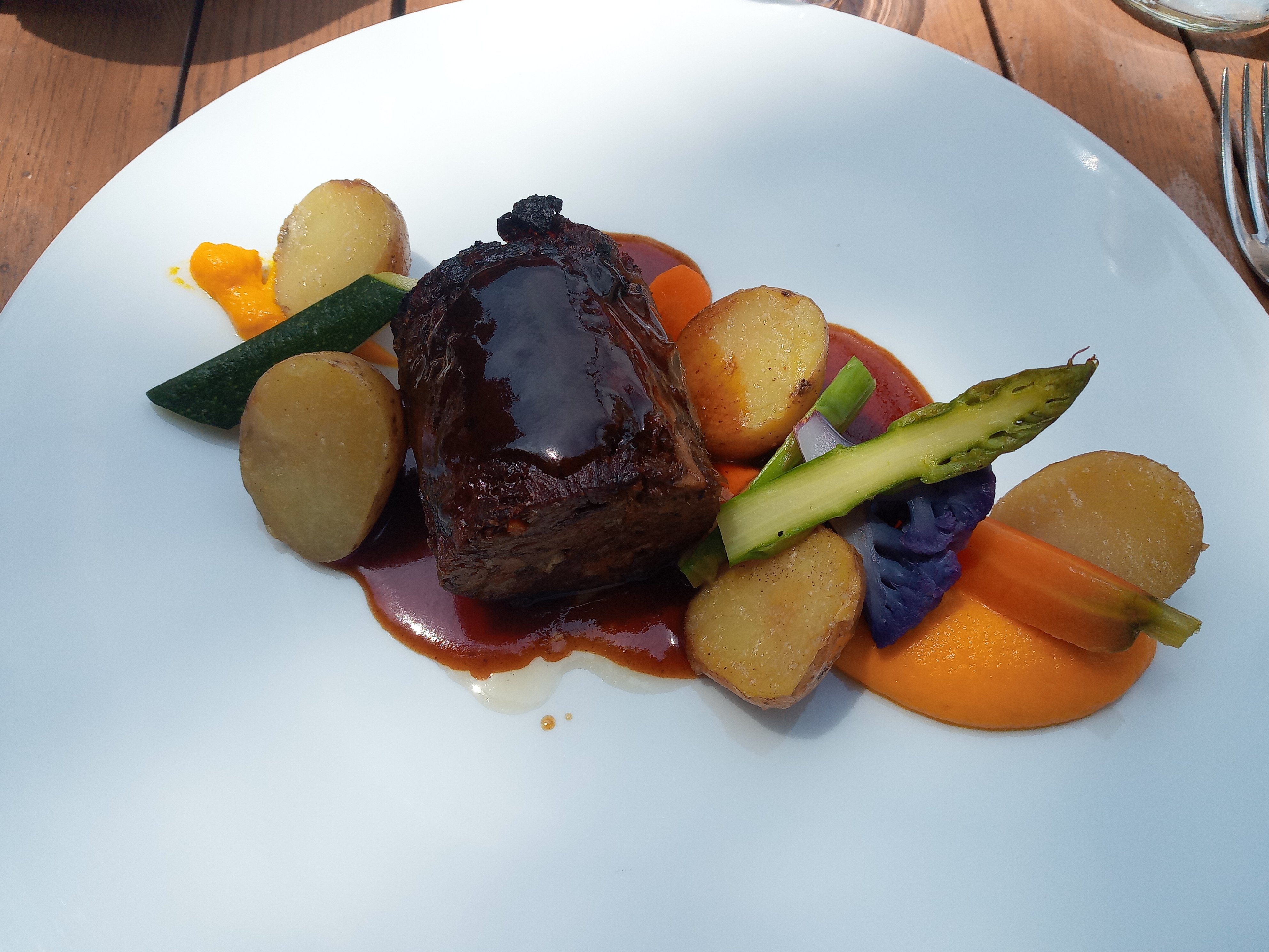 Restaurant très charmant. Mets recherchés, agréables à l'oeil et au palais. Mariage des saveurs et des couleurs. Le mille-feuilles de chèvre est excellent, le paleron de boeuf confit et ses légumes est exquis (cf. photo). Nous avons déjeuné en terrasse, le personnel est très à votre écoute. Félicitations à toute l'équipe. Je recommande. Note 5/5