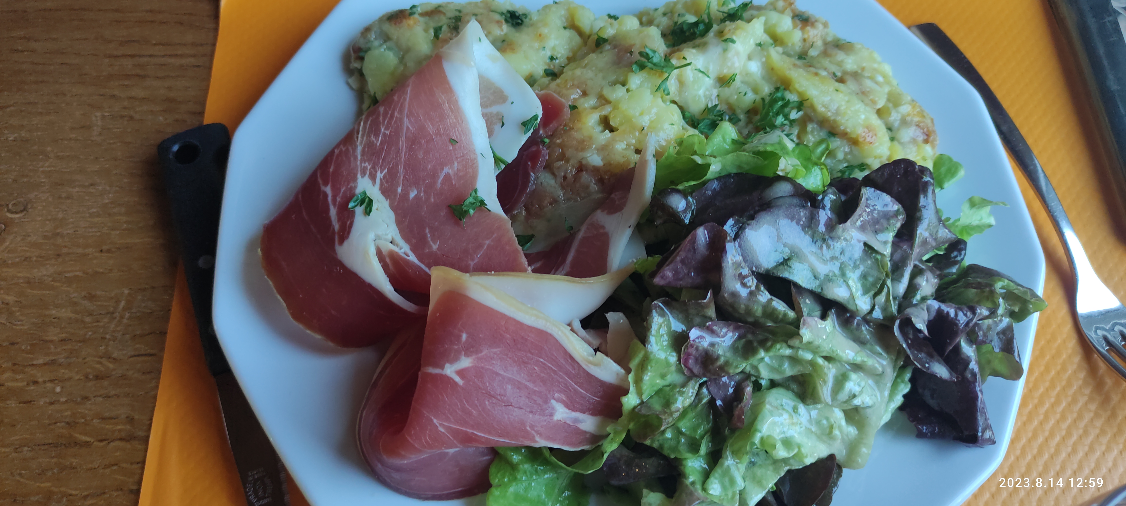 Une nourriture avec des produits frais et de qualité simplement cuisinée, sans oublié un jambon d excellence, du traditionnel qui vs régale, très bon rapport qualité prix merci