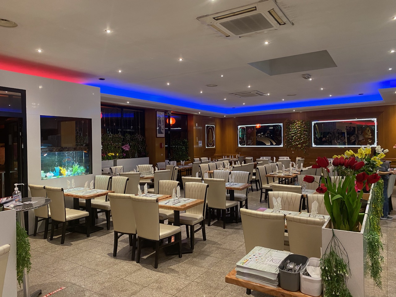 Une grande salle bien délimitée par des séparations discrètes . Un accueil sympathique par d'agréables personnes sans être accaparentes . Un bar où l'on peut prendre un apéritif , un grand buffet comprenant des entrées variées en produits frais , crudités , produit de la mer , cuit ou cru suivant son choix . Un buffet de coquillages certains jours . Un buffet pour la cuisson au ''wok'' bœuf , poulet , canard , porc ; coquillages et crustacés . Un grand buffet proposant bien-sûr de nombreuses spécialités . Un buffet desserts complet , gâteaux , fruits , spécialités ,Glaces . Très appréciable : salle calme sans bruit de téléviseur malgré leurs présence , on sort sens sentir la friture , un bel aquarium . La qualité et la fraîcheur sont là . Le prix , très attractif , en semaine une boisson comprise entre 12€ et 14€ , le week-end il faudra compter un peu plus mais les buffets et les divers choix sont important , il faudra compter entre 15 € et 18€ . Ce restaurant est à conseiller , à essayer absolument .