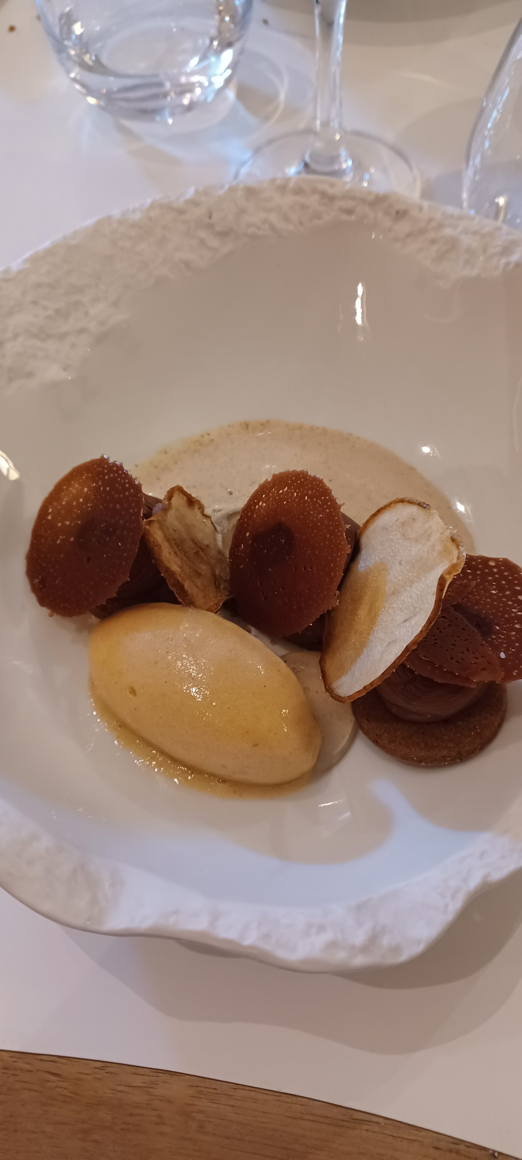 Lieu très agréable chic et sobre,très jolies tables ,décor typique d'une vieille batisse et chic.Repas dégustation : un vrai régal, très original ,bien présenter, délicieux, et pour un menu dégustation c'est très copieux.Seules les assiettes pourraient être plus jolies. Nous recommandons ce restaurant et nous y reviendrons