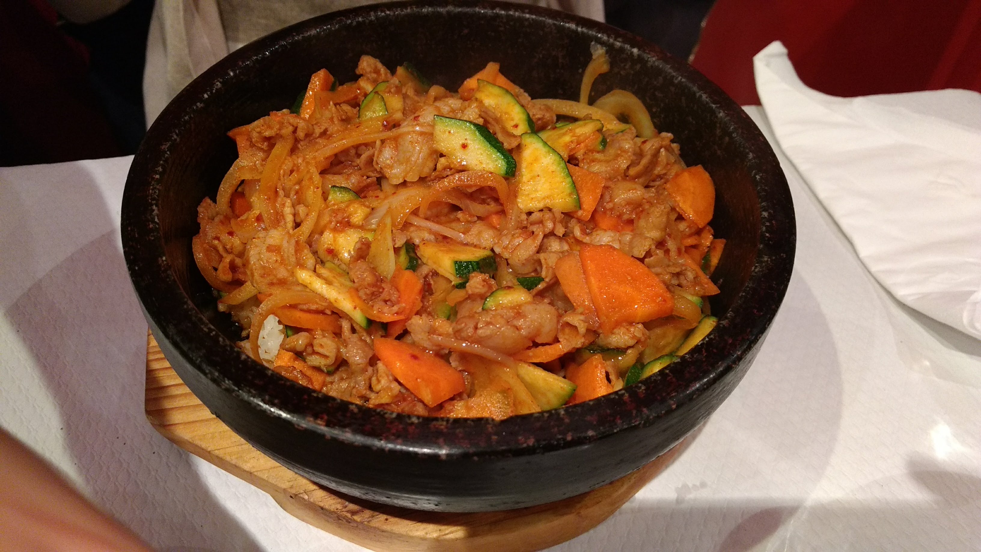 La nourriture n'était pas mauvaise, mais payer un bibimbap de bœuf plutôt médiocre à 18€ est un vol, quand d'autres restaurants coréens du coin proposent la même chose (sinon mieux) à des prix plus raisonnables.
