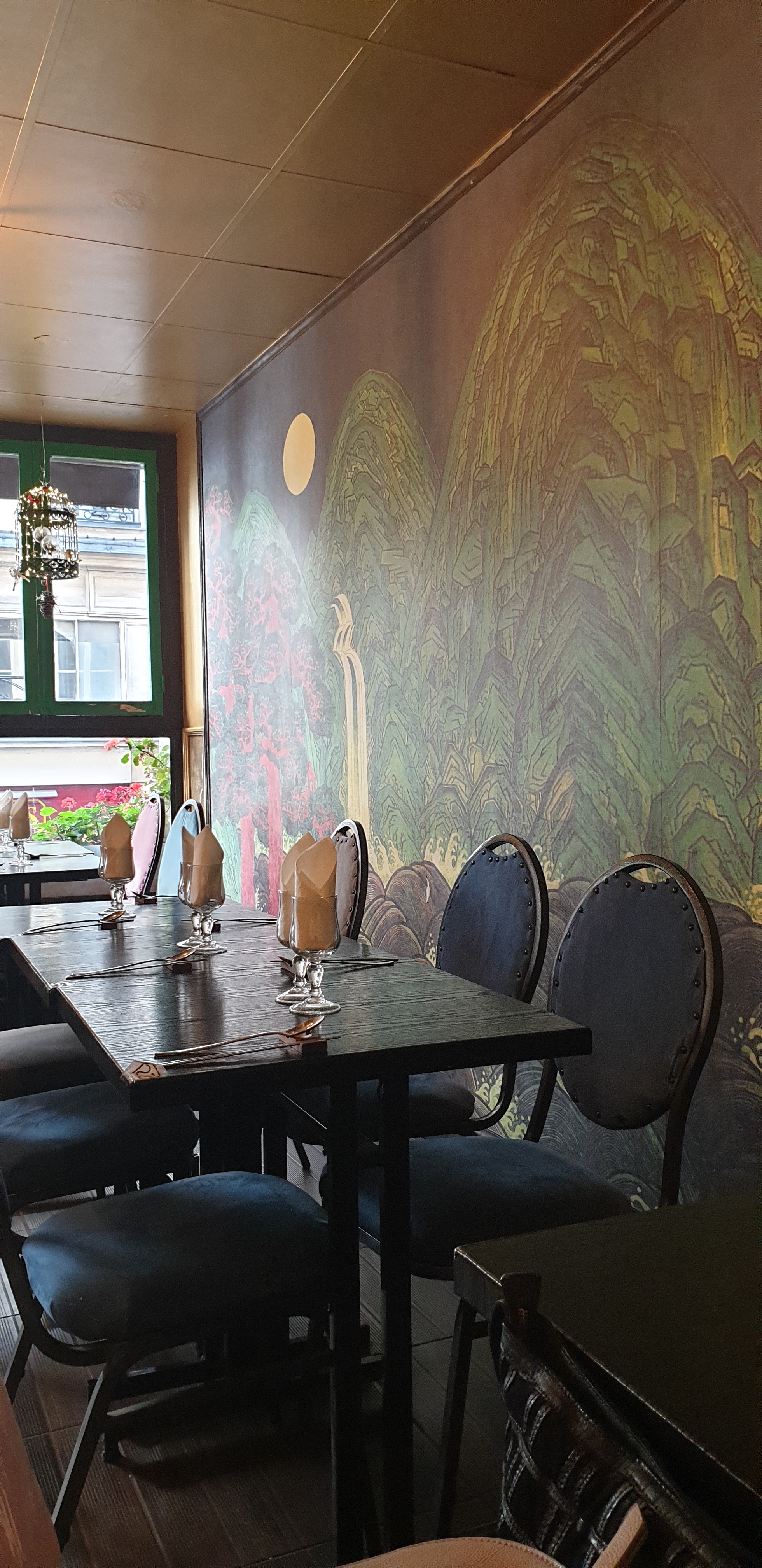 Lieu très calme Ne vous fiez pas à la petite salle en bas. Il y a un étage avec une belle salle décorée. Le pot au feu pour deux personnes est au top.