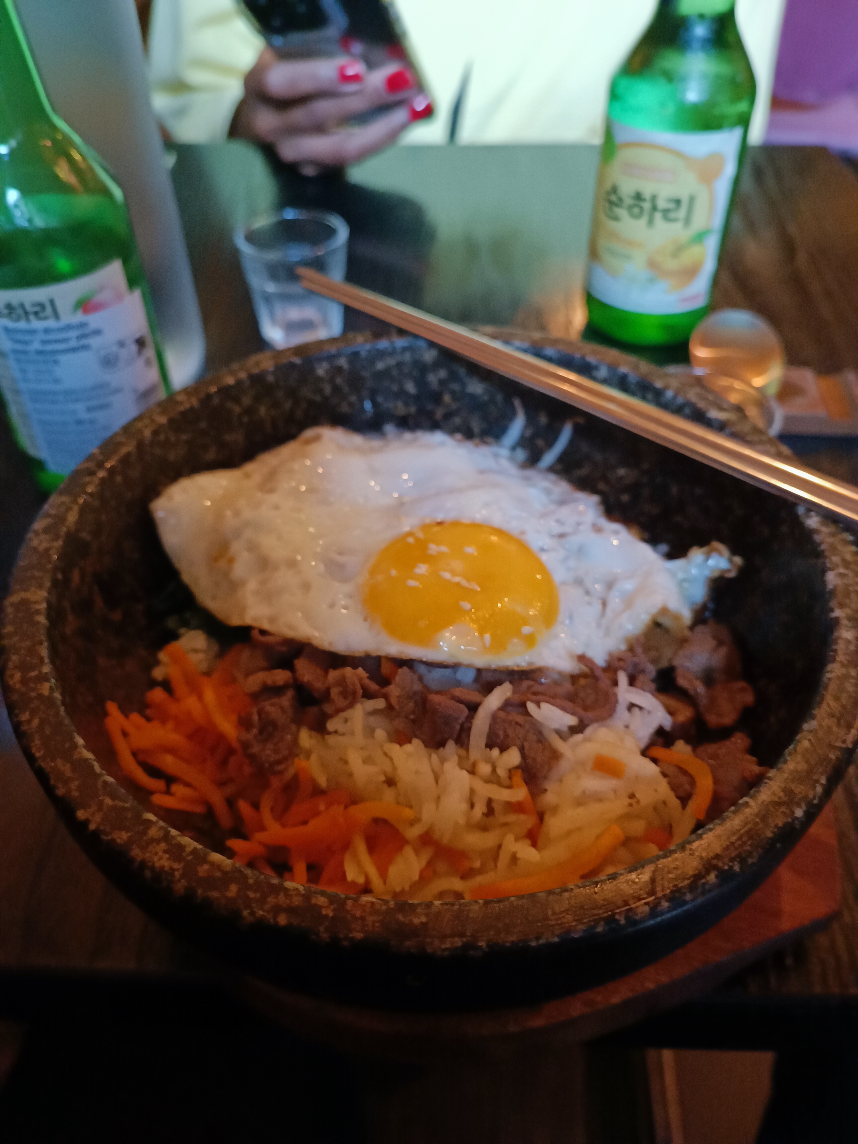 Première fois que je mange coréen et j'ai adoré ! Le soju à la pêche (genre de liqueur) à l'apéro super bon avec omelette de haricots rouges, puis les plats étaient délicieux et le service excellent, une demoiselle très gentille qui nous a bien aidé à choisir. Merci 😊