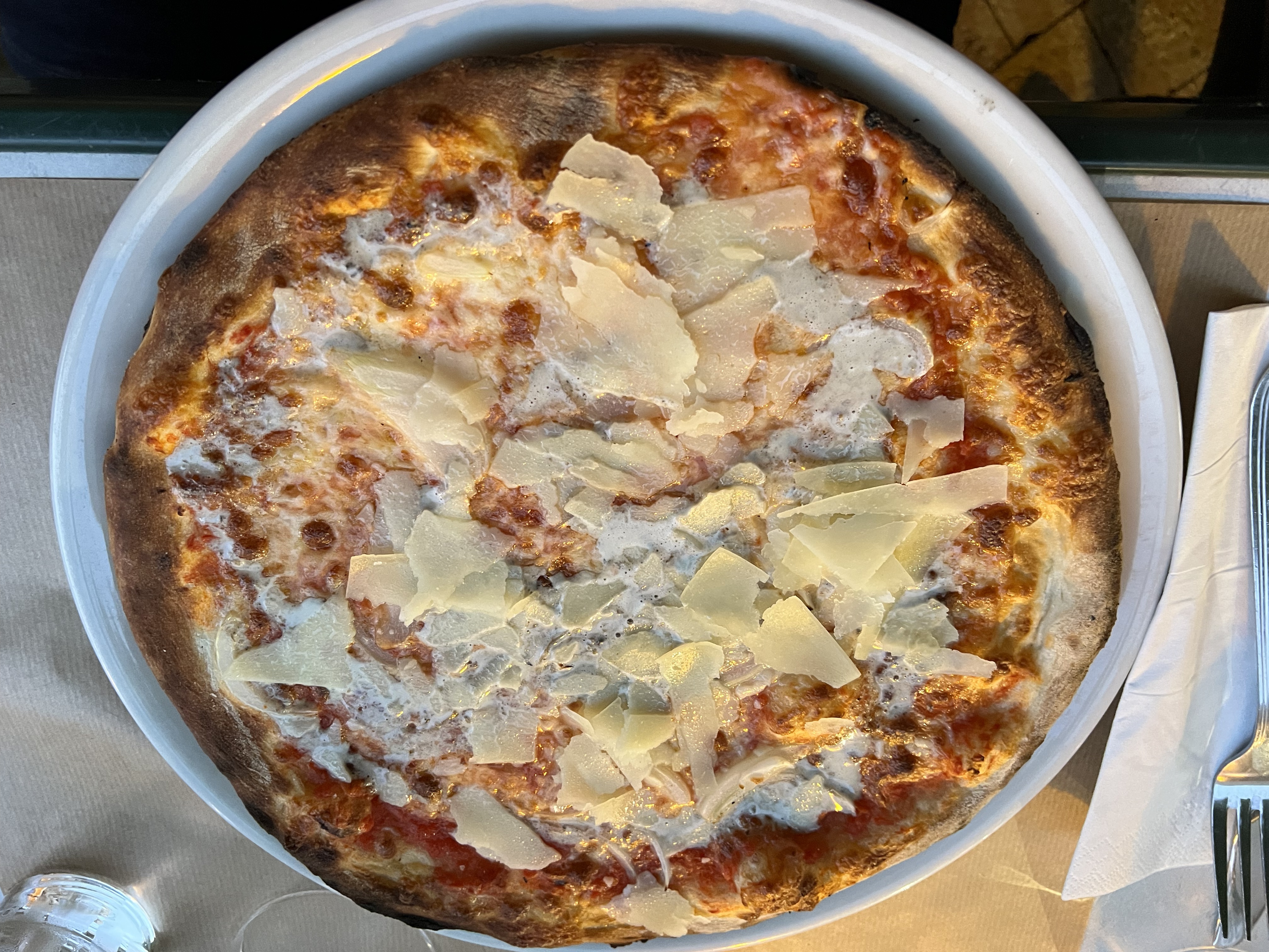 Pizza exquise, une vraie pâte moelleuse, ni trop fine ni trop épaisse, la meilleure pizza depuis longtemps... restaurateurs très accueillants et diligents, avec un charmant accent italien! Nous recommandons absolument !