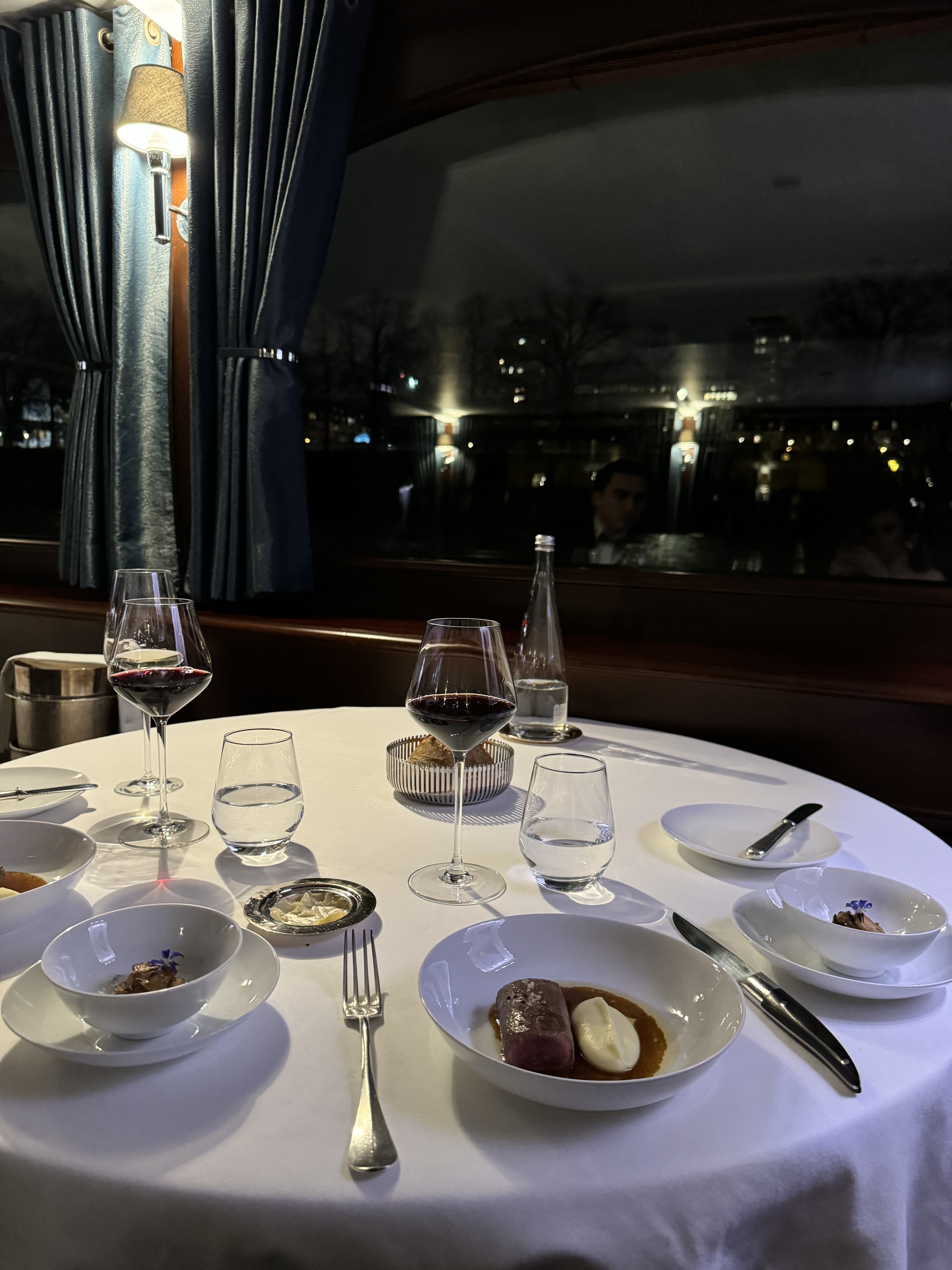 Excellent moment lors de ce dîner croisière à travers Paris. Mention spéciale pour la langoustine, plat signature du chef ! Le personnel est irréprochable et très bienvaillant ! Recommandé à 100% si vous souhaitez vivre une parenthèse enchantée au rythme d’une ambiance très sobre. Instagram : eat2try