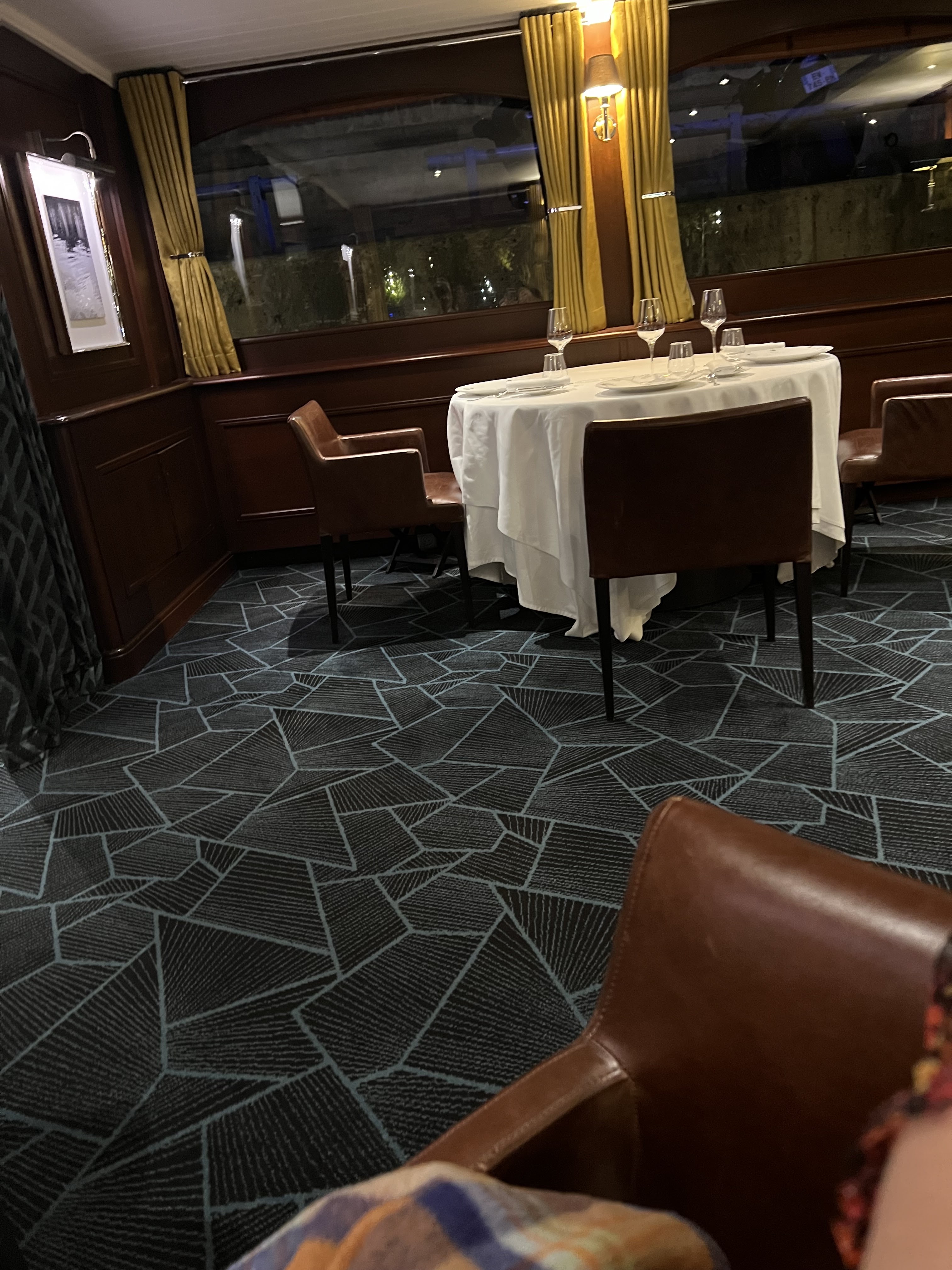 Diné récemment. Excellente expérience, sans doute méconnue à Paris. Tout est parfait sans aucune réserve Bien entendu le repas, très créatif et très bien exécuté. Mais surtout dans une ambiance de club anglais chaud et classique. Équipe à bord très professionnels, au petits soins mais aussi humains et sympathiques. Le plus est une disposition des tables et notamment des tables de deux offrant un Paris en 16/9ème alors que l'on se régale. le seul regret: c'est trop court! Mais heureusement on nous propose d'utiliser le deck supérieur pour un dernier verre face à la tour Eiffel. Franchement à recommander.