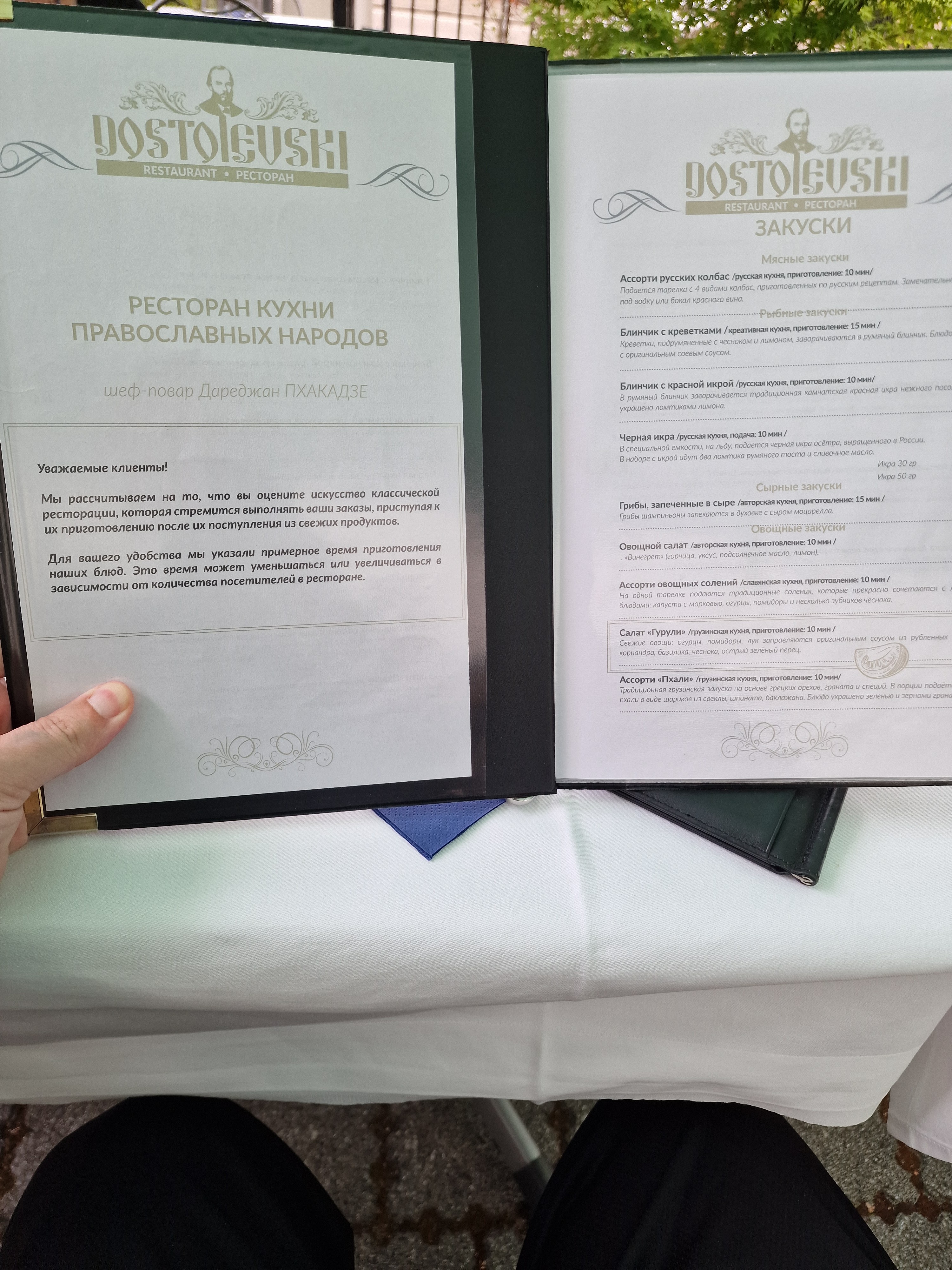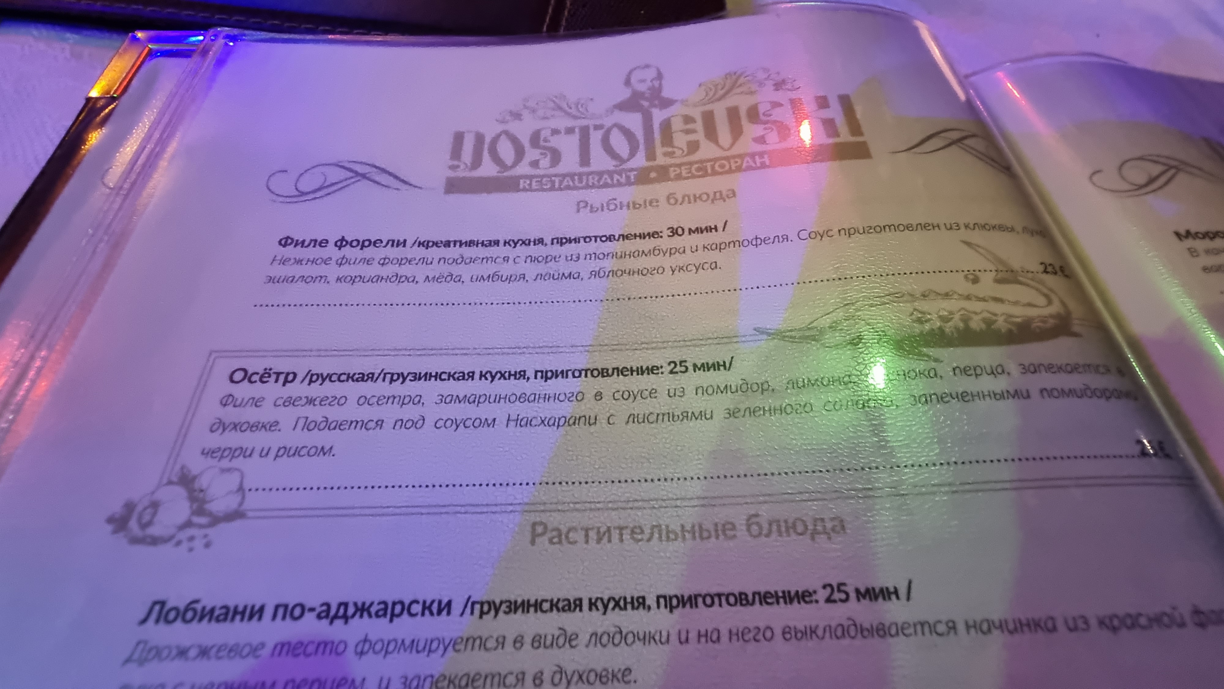 - Belle expérience - J'y étais un 26/12. Je n'avais pas réservé à l'avance mais je pense que j'avais de la chance. - Les repas sont d'origine géorgien, russe et ukrainien. - Serveurs très aimable, - je me suis régalé