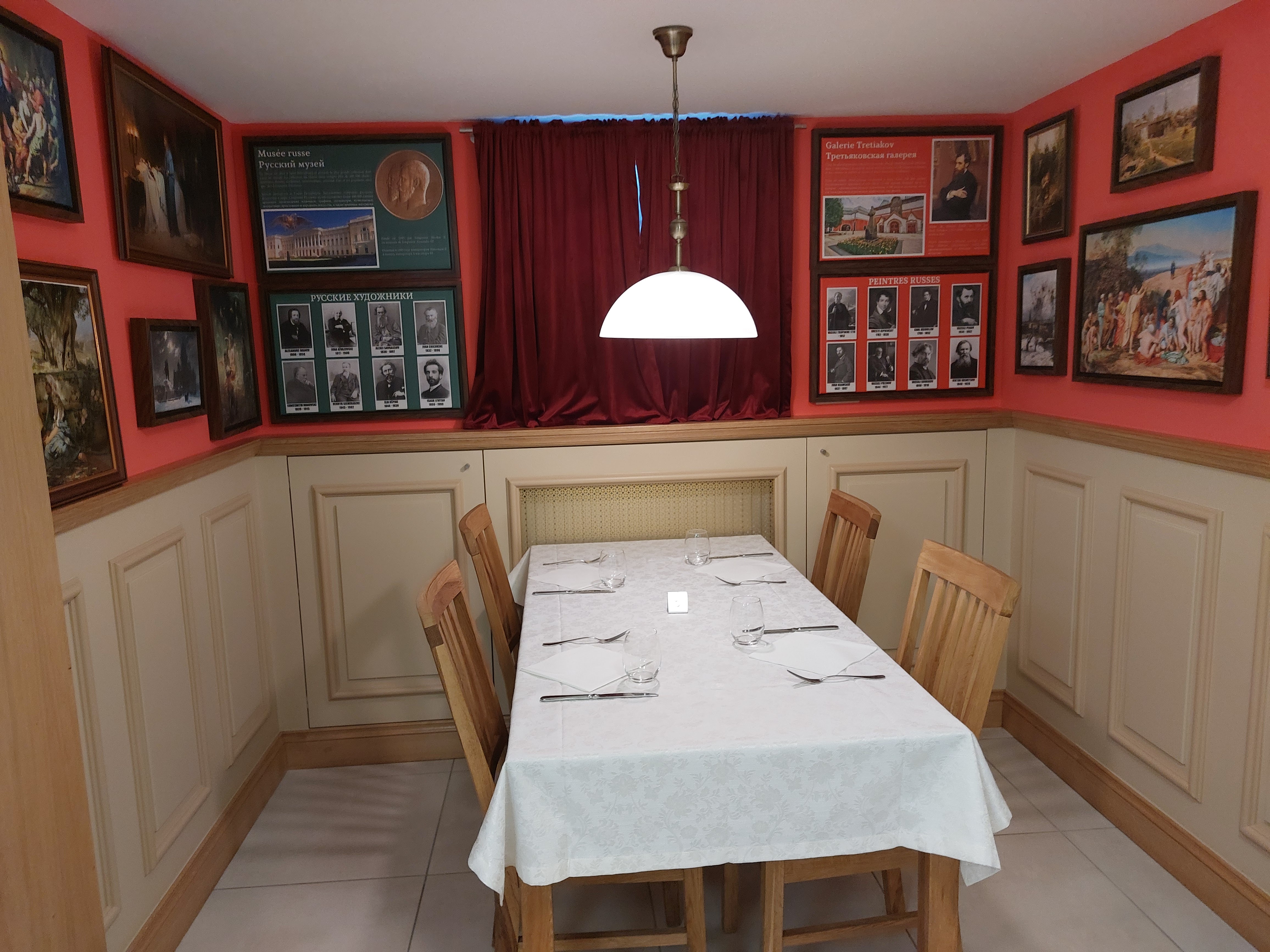 Belle surprise! Cuisine slave savoureuse, cadre agréable, juste à côté d'une très belle église russe. Le personnel est très aimable et disponible, le service est rythmé sans être expédié. On a passé un très agréable moment dans ce restaurant...en compagnie de Dostoïevski, Tolstoï, Pouchkine, Lermontov, Pasternak etc...dont les portraits ornent les murs. Nous y reviendrons, c'est certain.