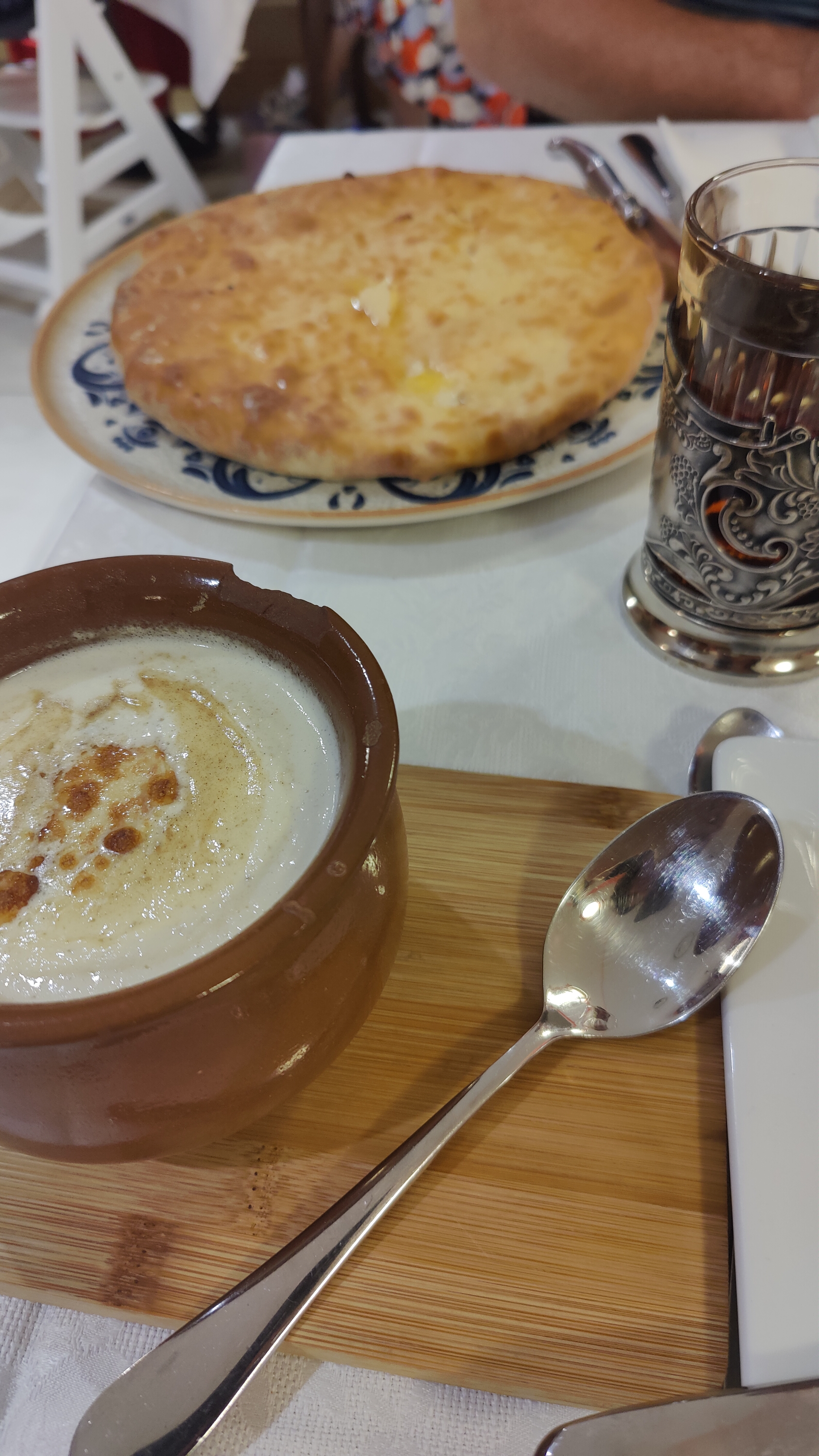 Lieu très sympa avec un cadre exceptionnel. La décoration est très riche et thématique. Très belle terrasse aménagée, très agréable lorsqu'il y a du soleil. Les repas sont typiques et variés, avec les incontournables. Attention juste par exemple pour le khachapuri avec l'oeuf cru dessus, les français ne sont pas très habitués à avoir un blanc d'oeuf cru ! ;)