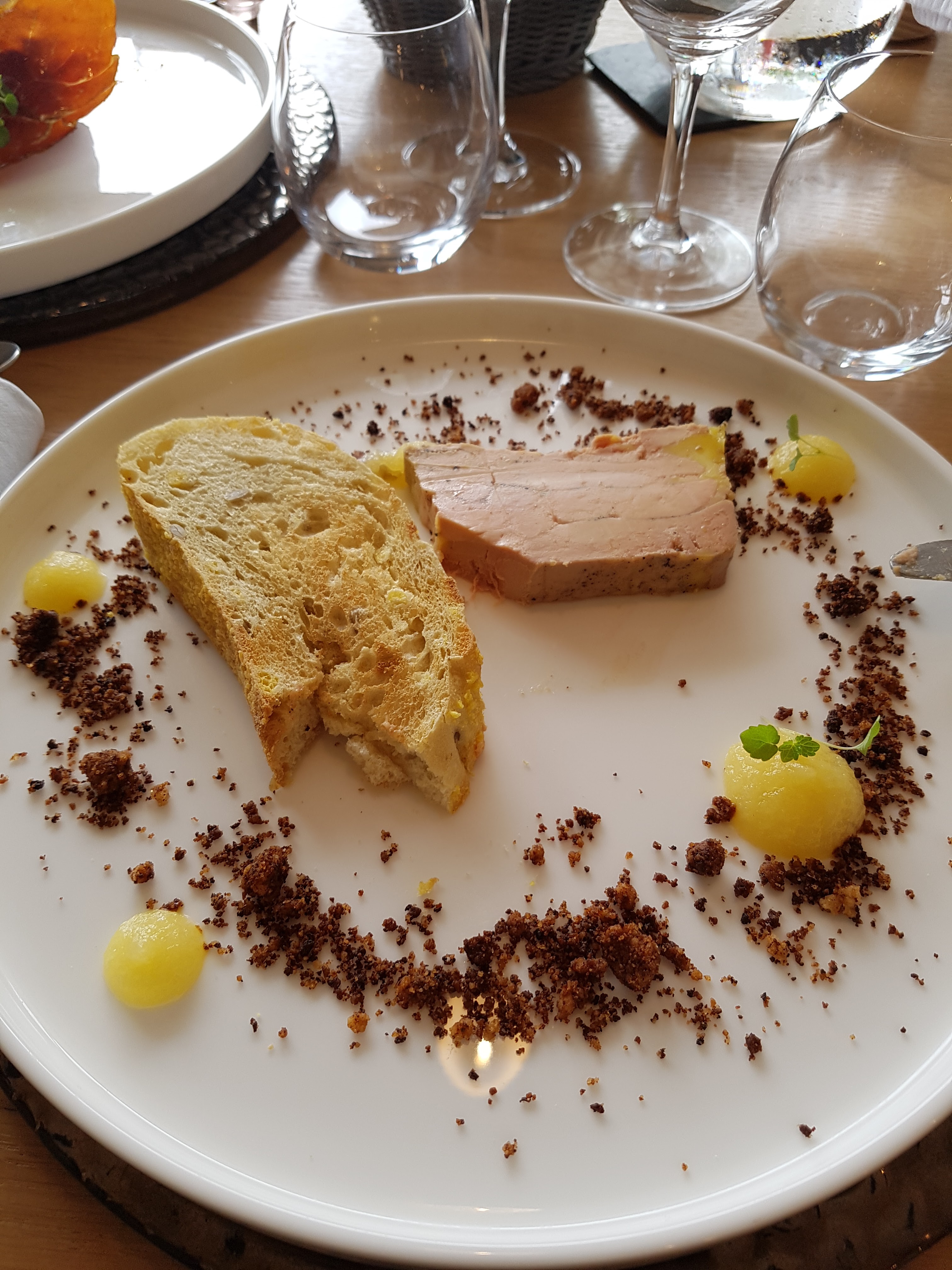 Restaurant chic à la cuisine raffinée. Pour moi, le foie gras et du magret de canard 🦆. En apéritif une coupe de pouce rapière. 😊