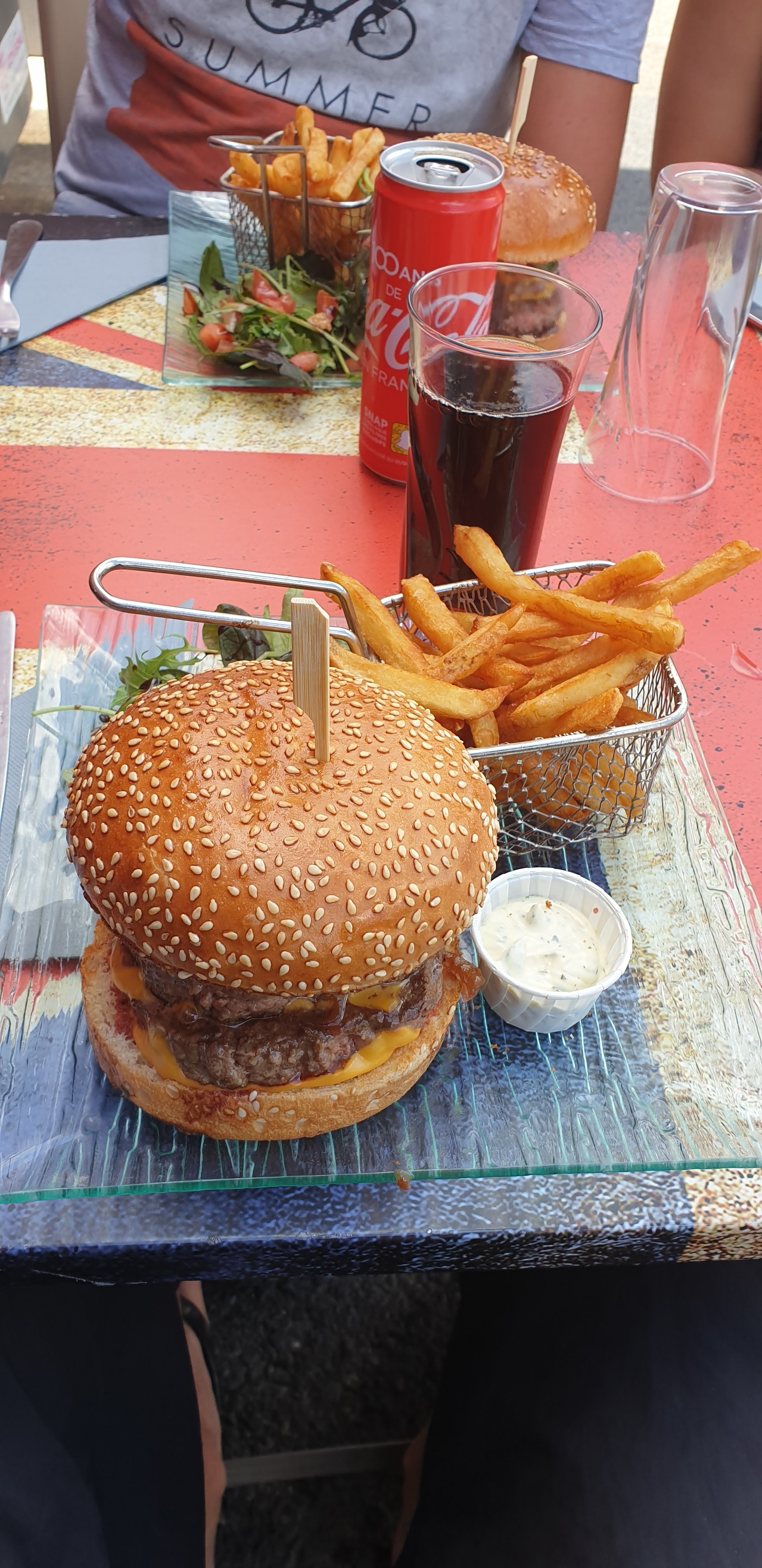 Très sympa, burgers frites salade... Très bon. prix raisonnable, personnes agreables.