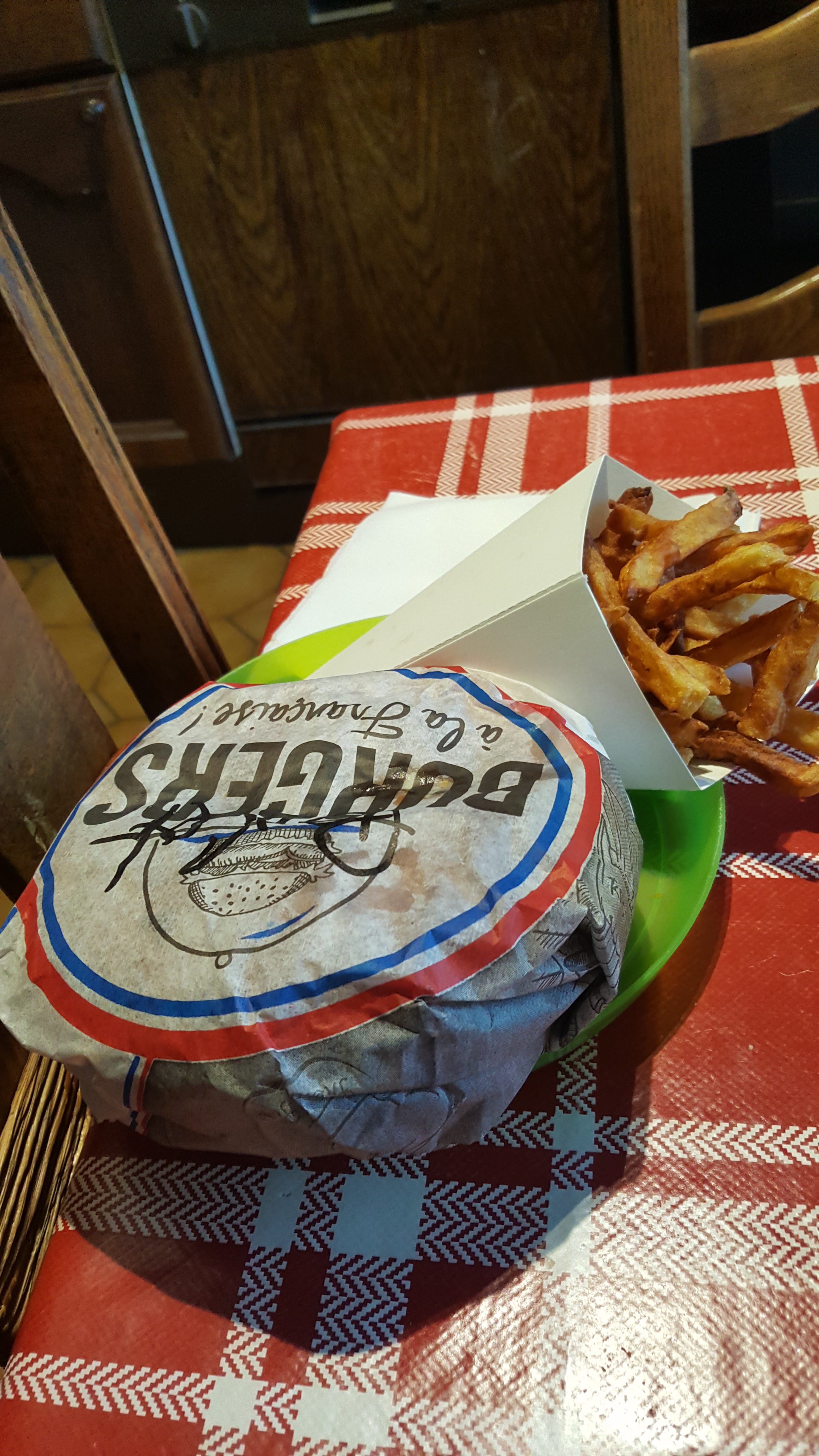 Malheureusement on a beau emporter et manger immédiatement (on habite à 3 minutes) les frites ne sont pas très très chaudes .. dommage