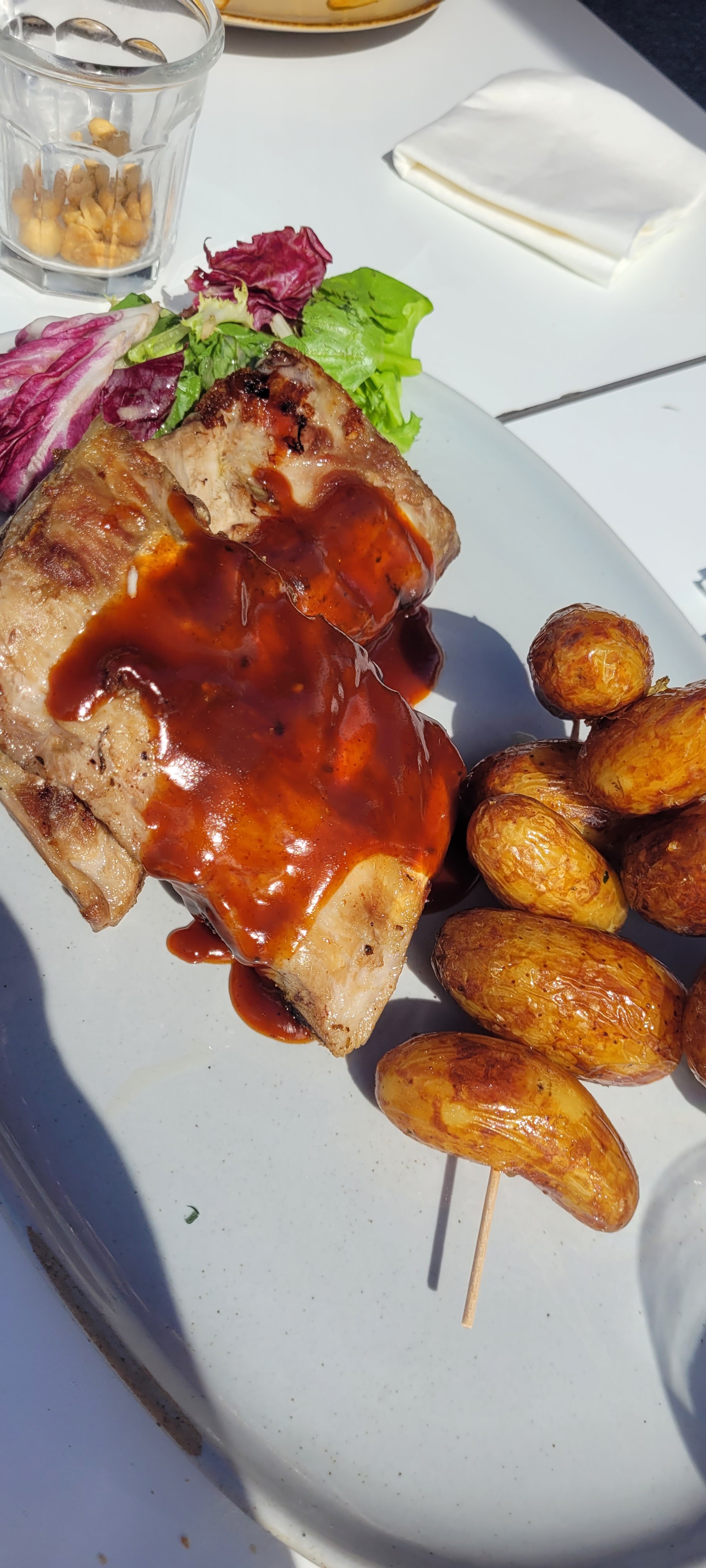 La cuisine n'est pas mauvaise, mais la qualité du service proposé laisse clairement à désirer. Le menu affiché sur l'ardoise devant le restaurant nous faisait envie : dorade, filet mignon aigre doux ou entrecôte. Finalement, une fois à table, nous avons appris que ce qui était affiché sur l'ardoise ne correspondait pas du tout. Nous avions en réalité le choix entre une brochette de bœuf, du filet mignon et du saumon comme poisson du jour. J'ai choisi le filet mignon aigre doux qui en réalité n'avait rien d'aigre doux, c'était juste de la viande cuite (certes elle etait bonne, mais cela n'avait rien à voir avec ce qui m'avait été vendu). Et le pire dans tout cela, c'est que j'avais demandé des grenailles (affichées sur la carte), la serveuse me dit qu'il n'y en a pas, que j'ai le choix entre frites ou légumes. OK, mais lorsque je me suis levée en fin de repas, j'ai bien vu que la personne assise deux tables plus loin avait des grenailles dans son assiette *Colère* Pourquoi conserver une ardoise qui ne correspond pas au menu ? Pourquoi tous les clients n'a pas le droit aux mêmes accompagnements ? De plus, le restaurant était sale (miettes dans la carte, traces sur les verres..). Certes la vue est belle, les prix corrects, mais tout le reste fait que je ne reviendrait jamais.