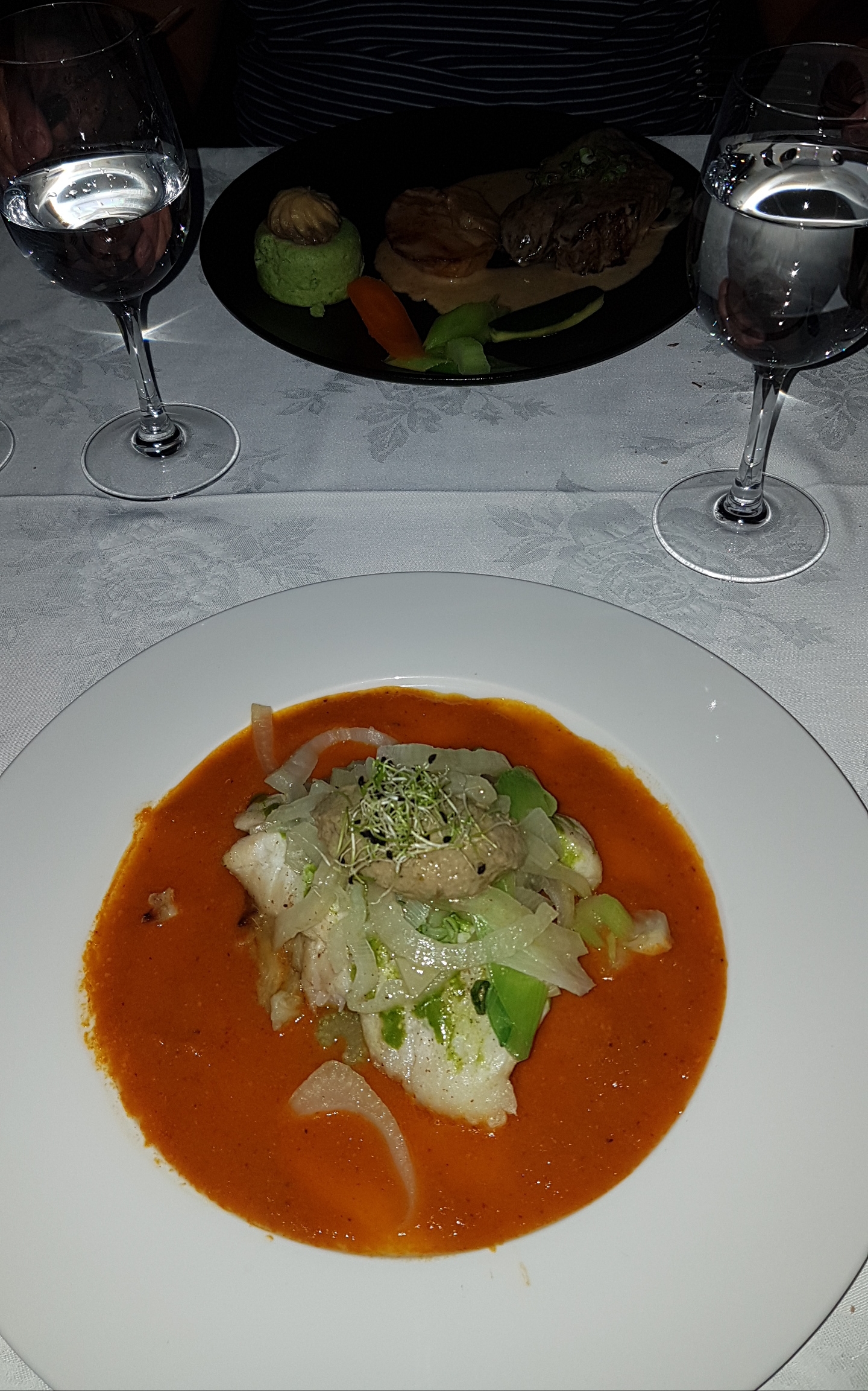 moment exceptionnel qu'elle belle découverte!!!!! on démarre au foi gras our terminé avec de la figue un vrai régal.une lotte sublime arrosée d une sauce armoricaine d exceptionnel. merciba vous Monsieur de nous avoir régaler un soir de semaine avec tant de grâce et de bonheur. merci à la sympathique serveuse qui a orchestre ce repas. une table à ne pas manquer