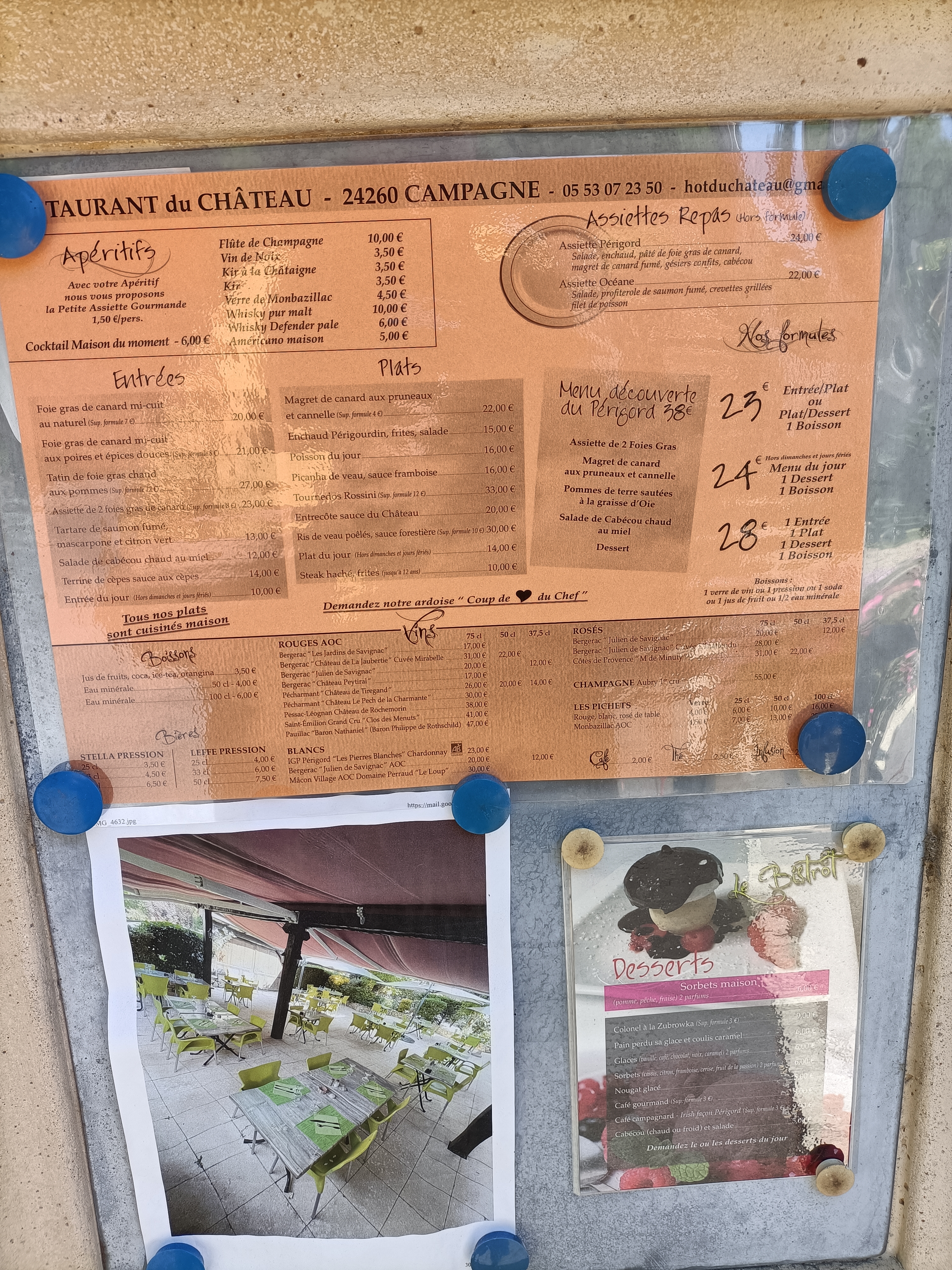 C'est bien simple, nous nous sommes régalés de A à Z: tant par l'accueil, le service, les produits frais que par le décor et l'ambiance du restaurant en plus du château. Notre seul regret est de ne pas avoir pu tester la terrasse à cause du mauvais temps, mais nous reviendronspour le faire ! Vous pouvez y aller les yeux fermés pour vous déguster du Périgord ! Bonus: cette pépite ouverte le midi se situe sur la route de l'aquarium du Périgord Noir depuis Sarlat ;)