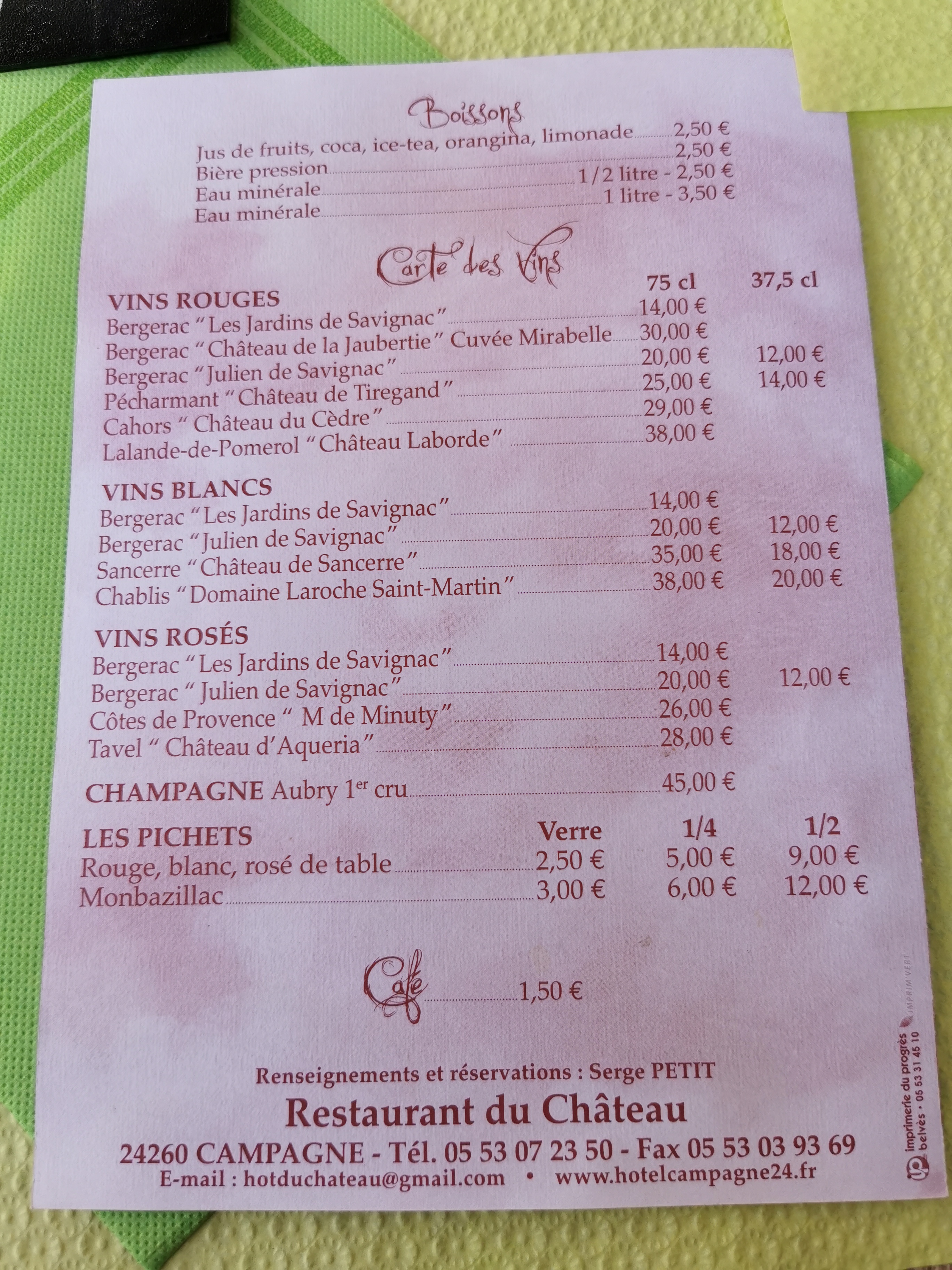 Le restaurant du Château à Campagne ! Une institution. Un restaurant à l'ancienne, produits frais, cuisinés sur place. Et cuisinés, faut voir comme ! Un délice. Je crois que j'ai à peu près fait le tour de la carte (je travaille souvent au centre de recherches archéologiques caché dans le parc du château tout proche ), TOUT est excellent. La dernière découverte est une terrine aux cèpes. C'est rare de goûter des cèpes aussi finement accomodés ! Vous verrez.