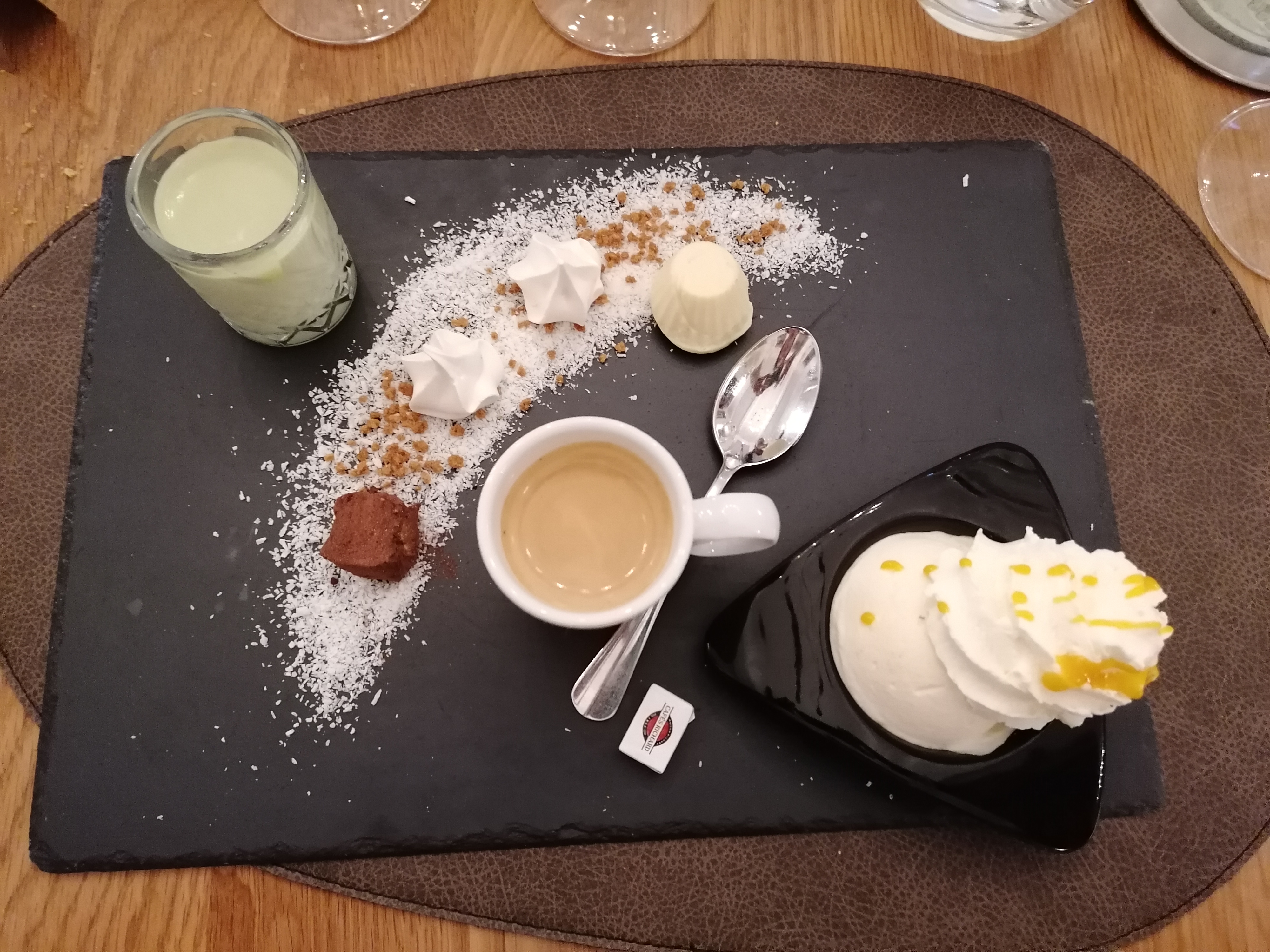 Menu unique sans ambition avec un dessert ananas coco sans le goût ! N'oubliez un vêtement chaud ou gardez votre blouson pour maintenir un minimum de confort...