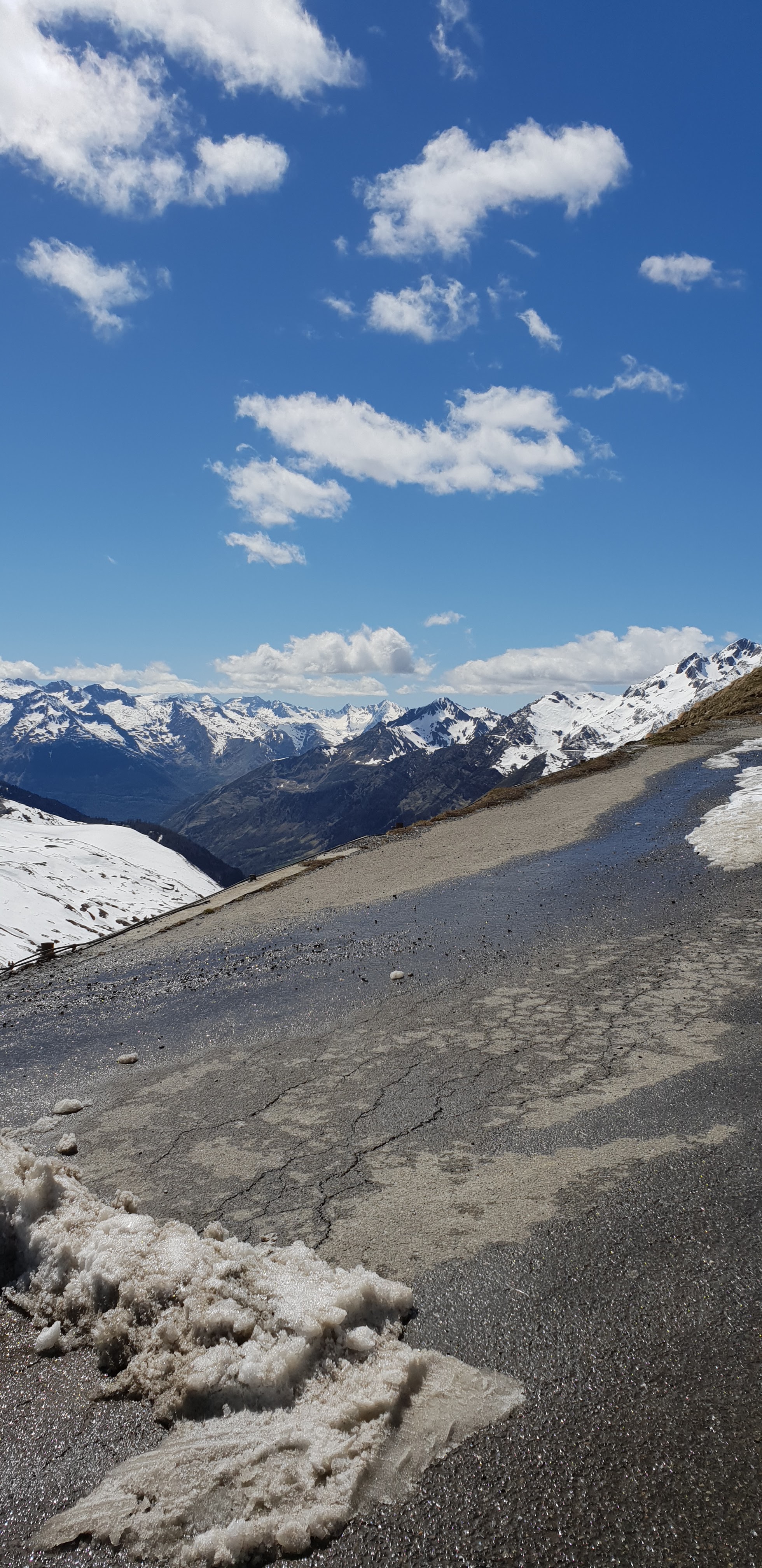 C'est une première fois dans les Pyrénées pour moi. Je voulais essayer de monter le Col. Pieds à terre à la Mongie. Mon vélo est un peu lourd et développements pas adaptés.