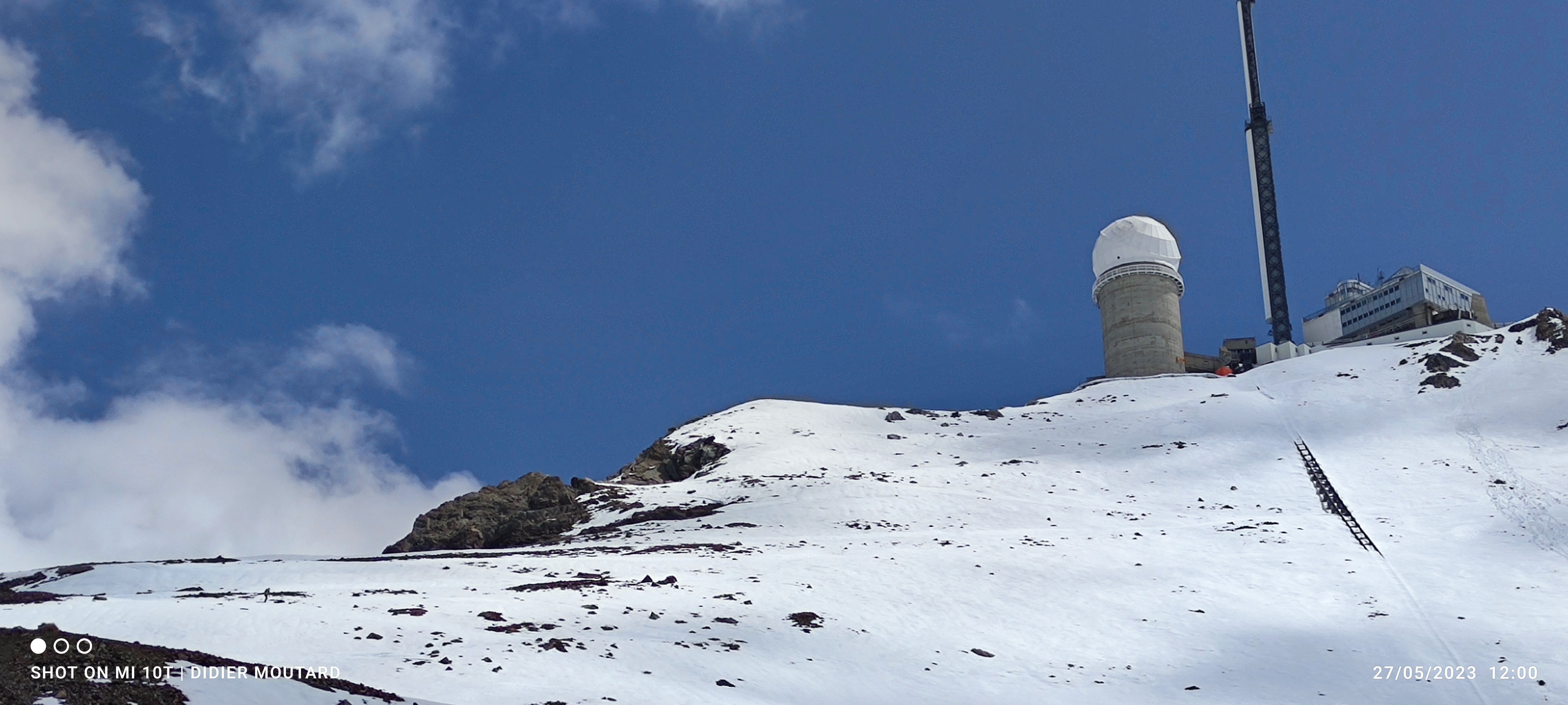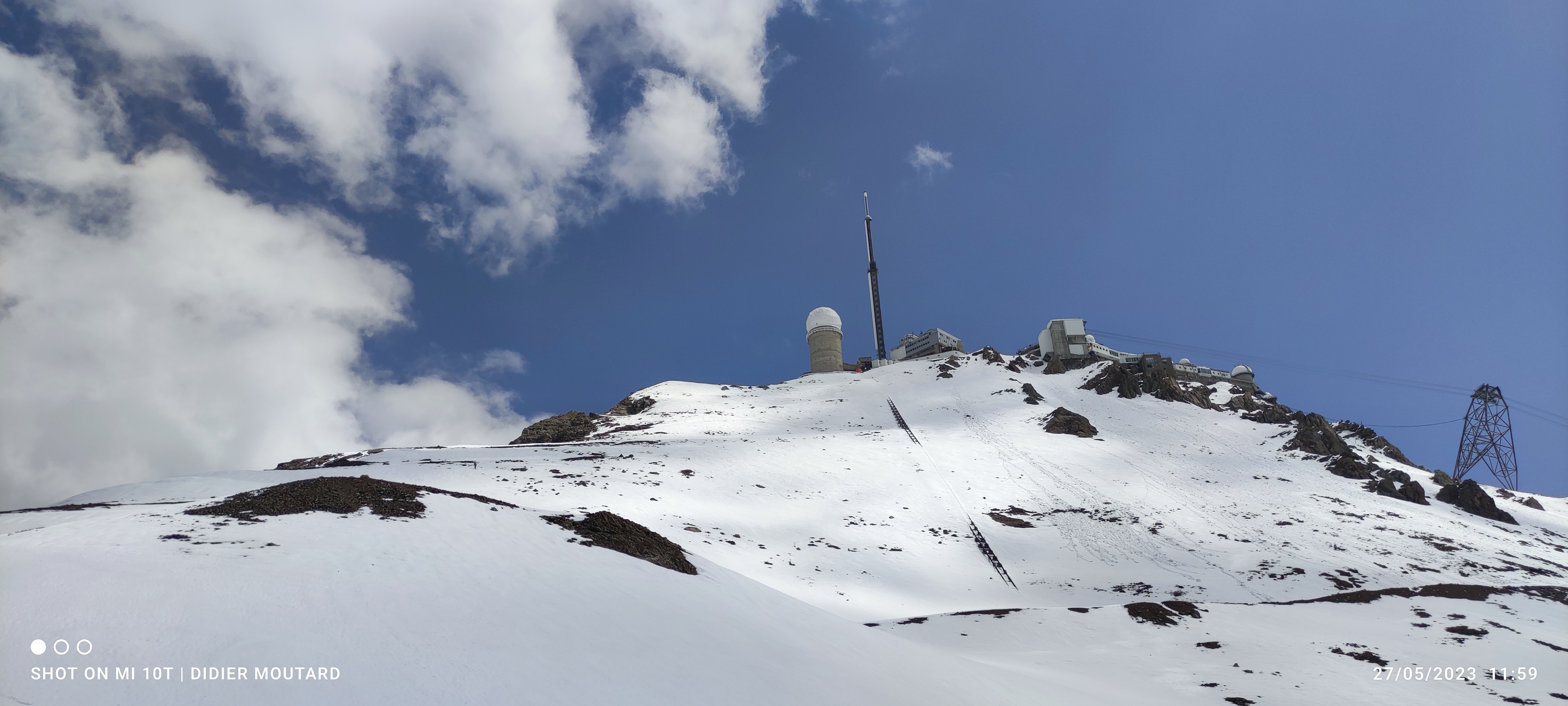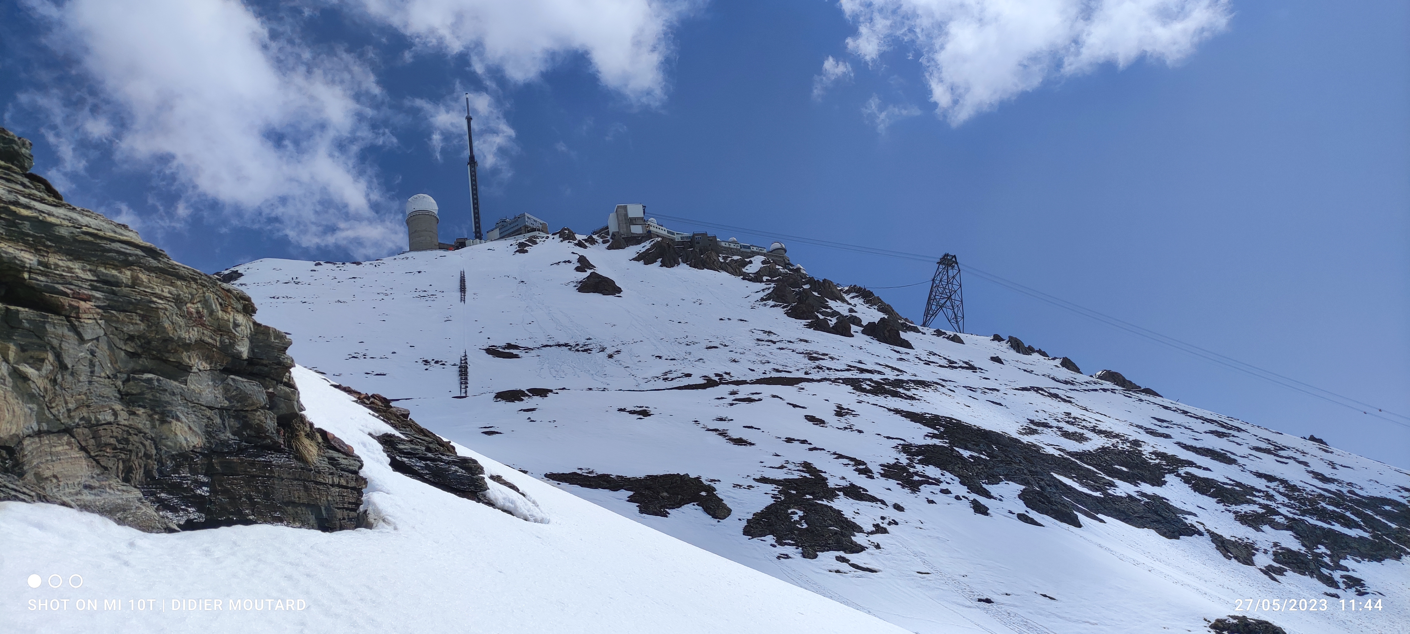 Un peu plus prés des étoiles...... le chemin qui mène à pied au pic du Midi est encore bloqué par d'énormes congeres...et le téléphérique pas encore ouvert.