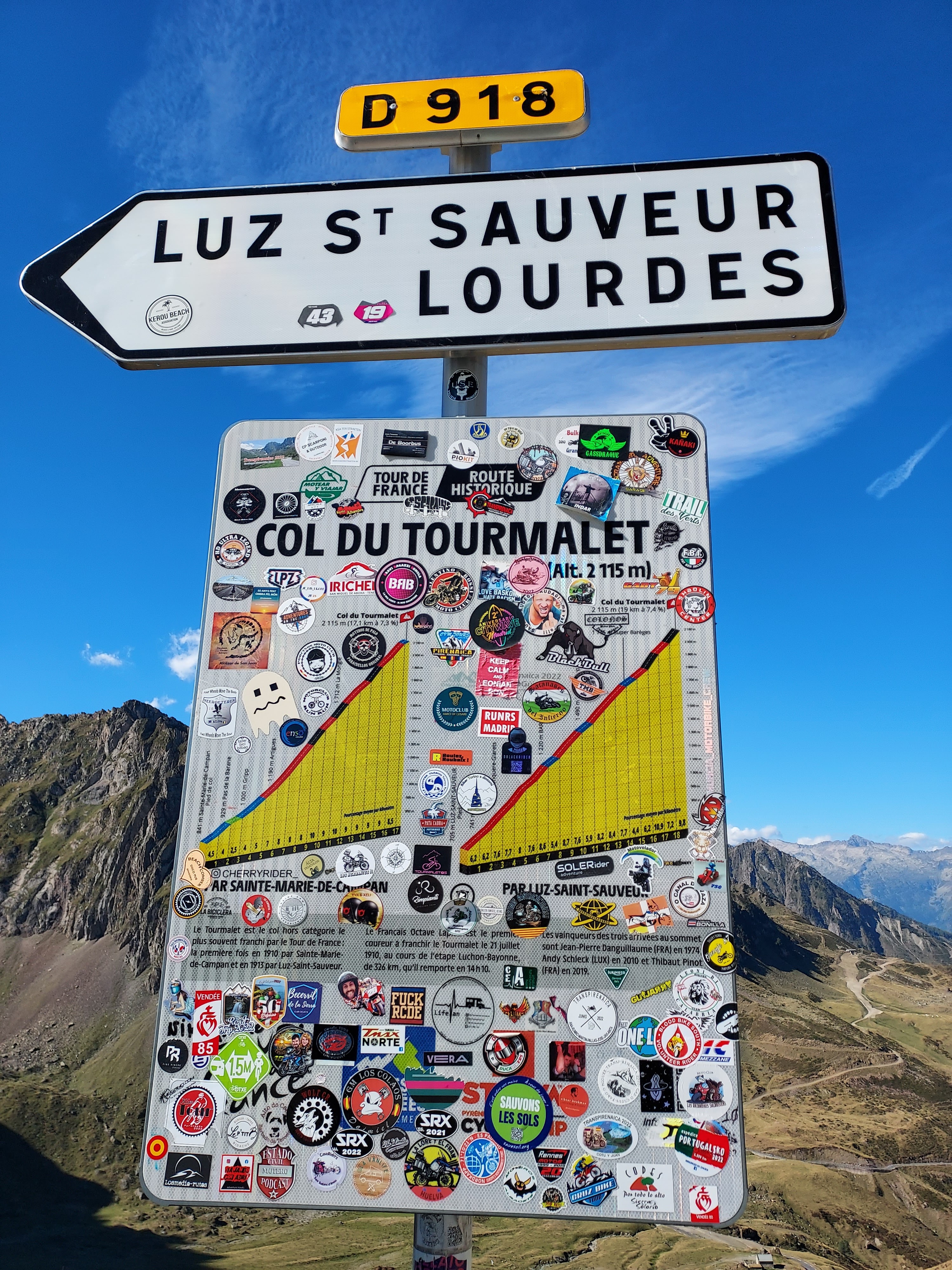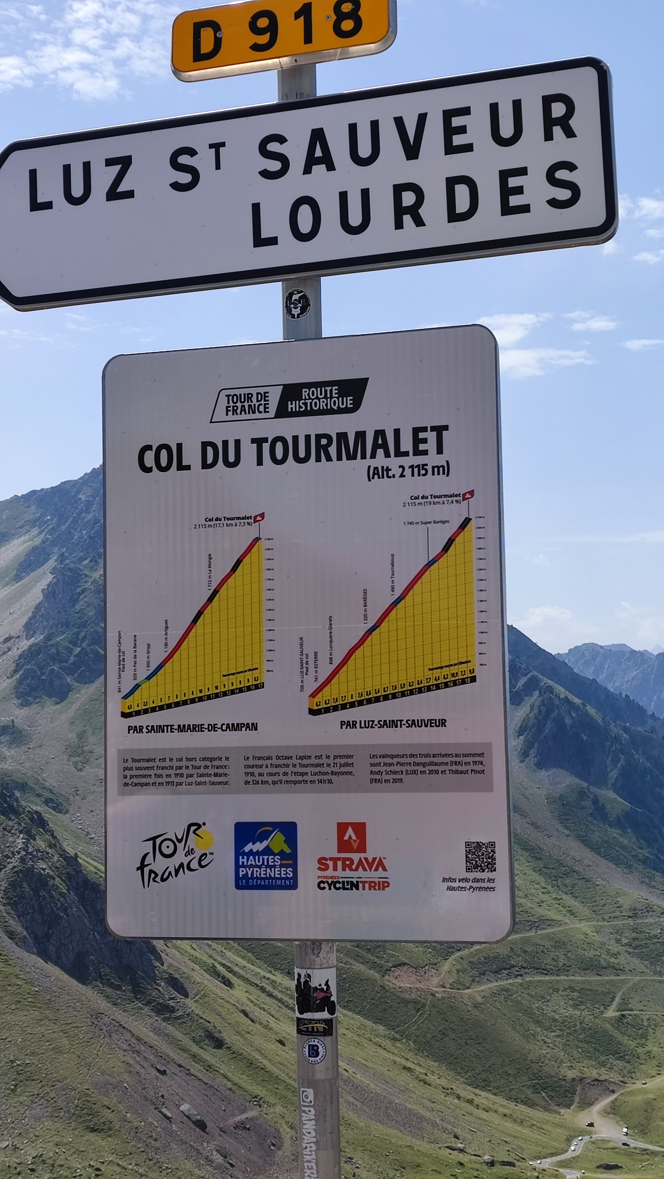 La Route du Tourmalet représente une ascension incroyable avec des paysages fantastiques. C'est une arrivée à une altitude de 2.115 m et un dénivelé au départ de Luz-Saint-Sauveur de 1.365 m. La route est fort belle, mais évidemment très sinueuse. Arrivé au sommet, nous étions totalement dans la brume, mais nous avons attendu quelques minutes pour avoir une vue dégagée. Le panorama était exceptionnel. La descente vers Bagnères-de-Bigorre offre des paysages tout à fait différents et permet le passage par le Pic du Midi de Bigorre. Exceptionnel.