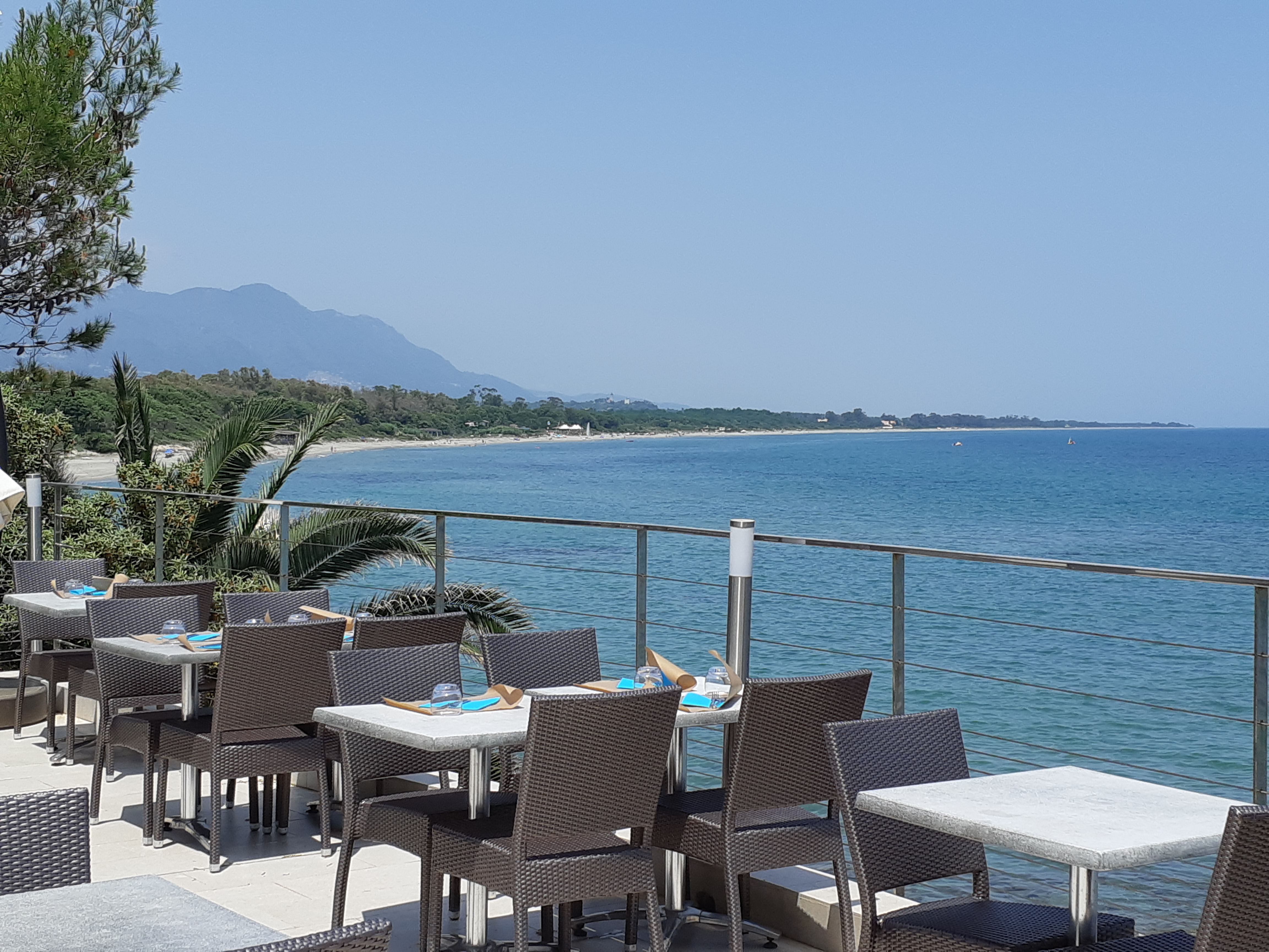 Juste un endroit magnifique. Le restaurant, la terrasse bord de mer en hauteur, les petits coins aperos sous les pins.. des hamacs, une balancelle, et cette vue sur la mer avec derrière les montagnes corses. De plus les plats du restaurant sont très bons.. bref un coup de foudre pour ce superbe lieu