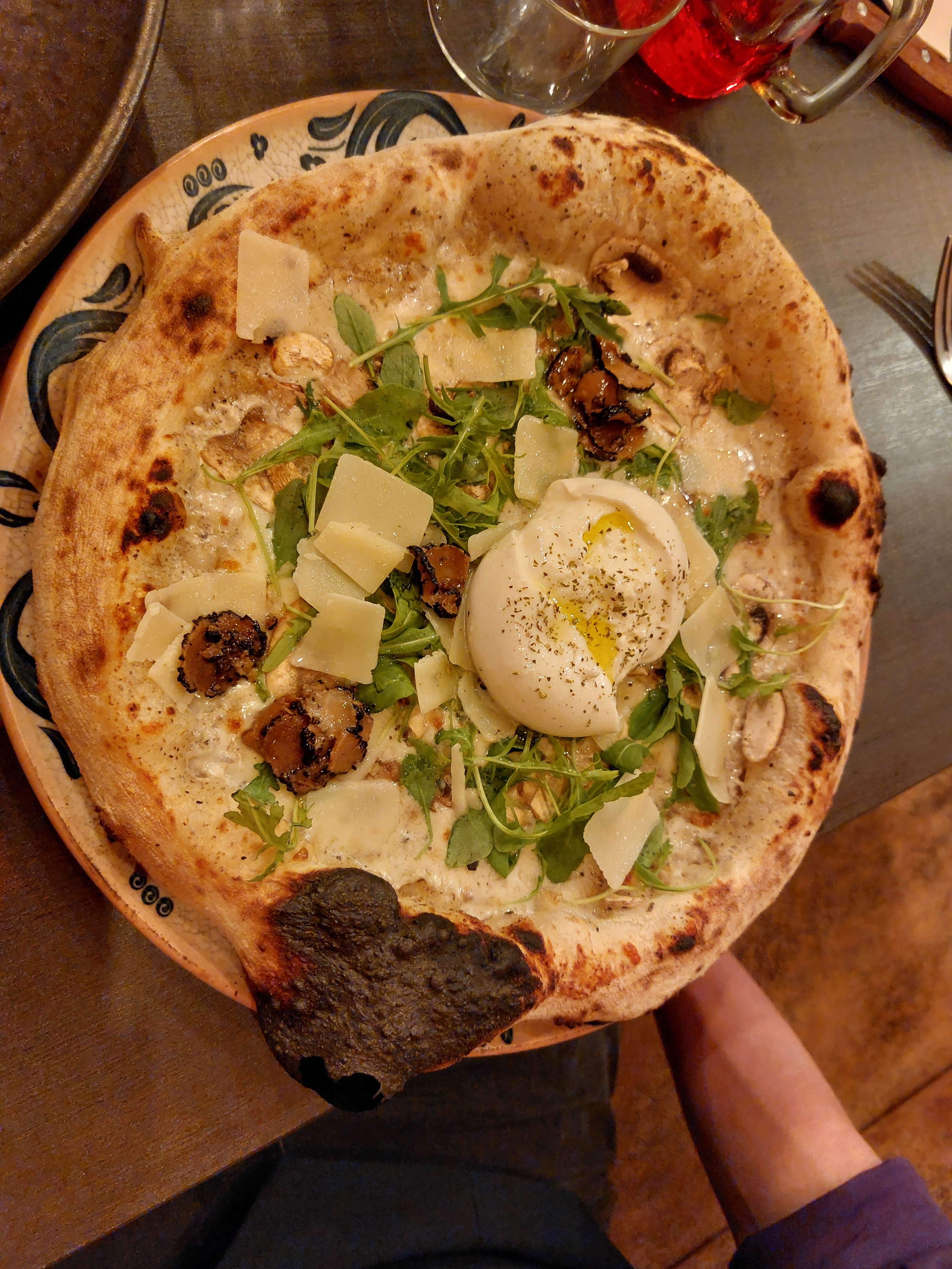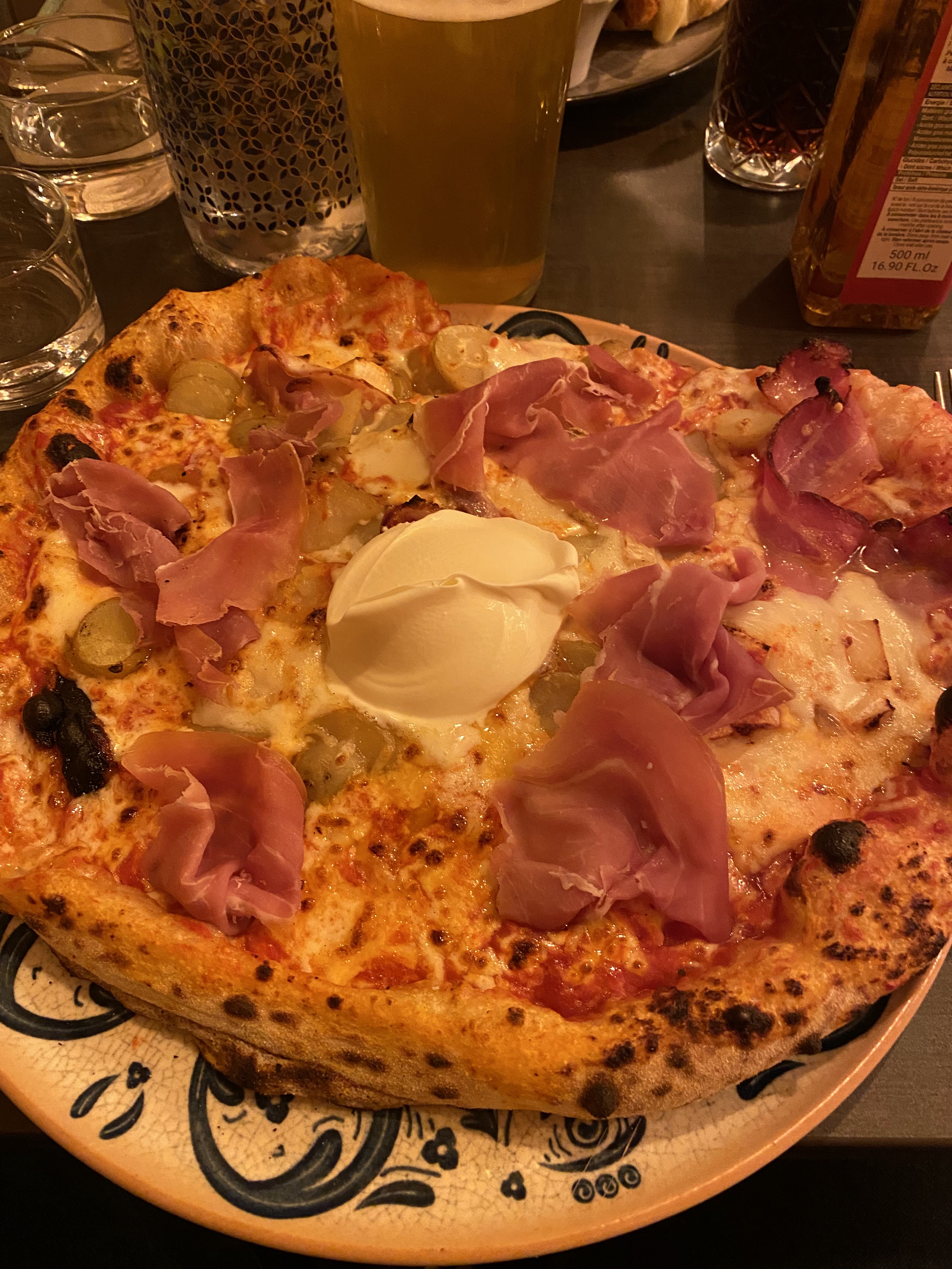 Nous avons mangé une pizza composée de produits locaux, le dessert était parfait,la bière ambrée excellente comme le personnel, un sans faute.