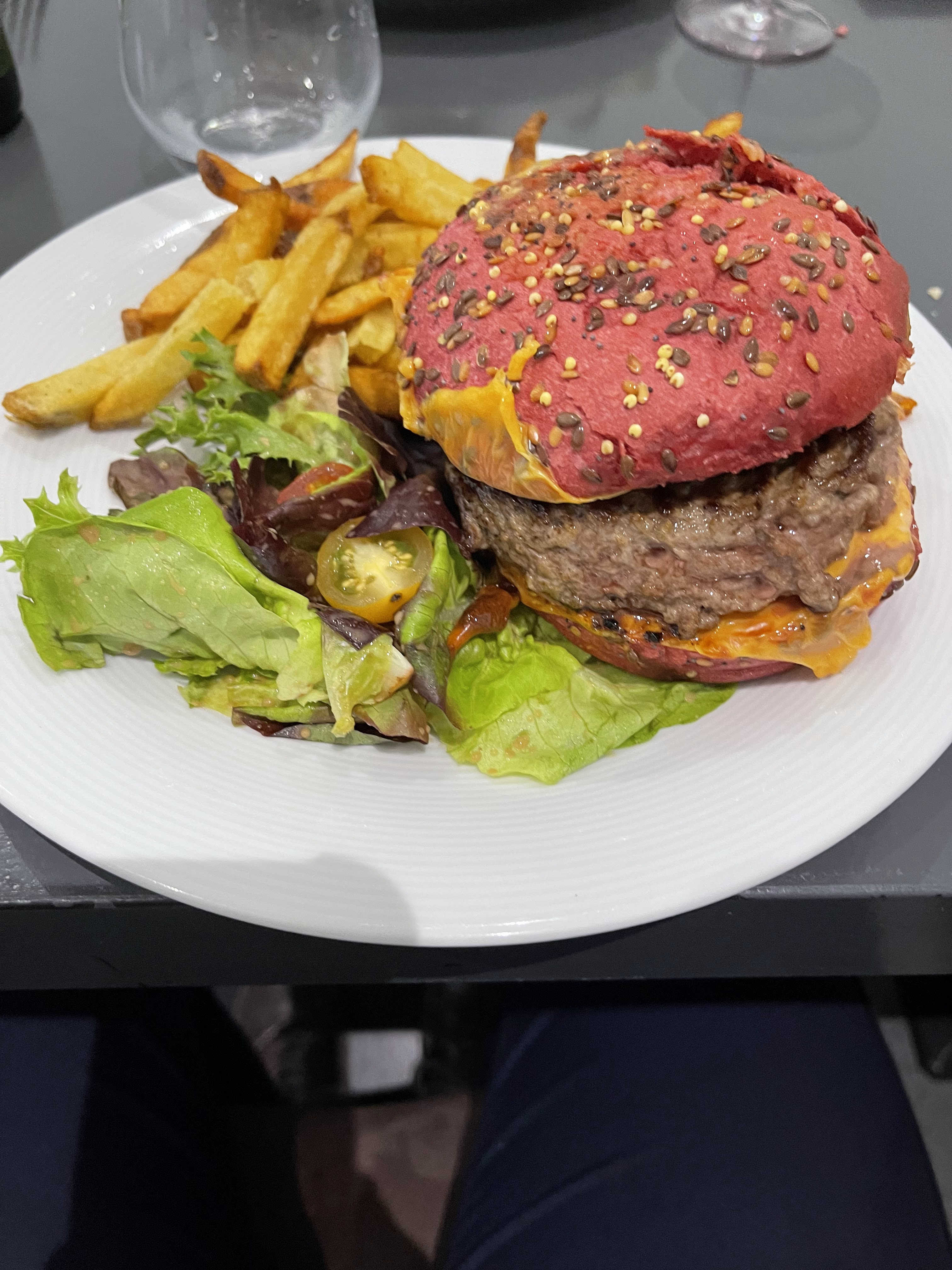 J’avais eu de très bon échos donc j’ai voulu tester. La jeune fille nous a accueilli (très souriante et agreable tout le long) et une fois sur la table celle ci n’avait malheureusement pas été nettoyée. Elle est revenue la nettoyer mais la table est restée très collante. Niveau repas, l’entrée tartare saumon fut bon mais le burger était très spécial niveau gout (apparemment pain au curcuma selon le serveur). N’ayant pas été averti nous avons accepté le plat d’autant plus que le service fut malheureusement très long (arrivé à 12h20, reparti à 14h10 alors que la salle n’était pas du tout pleine et nous étions 4).Du coup ressenti très mitigé. Merci à la jeune fille de l’accueil pour son sourire, son amabilité et ses réponses. Ma collègue a vu son repas offert car pas cuit, merci pour le geste