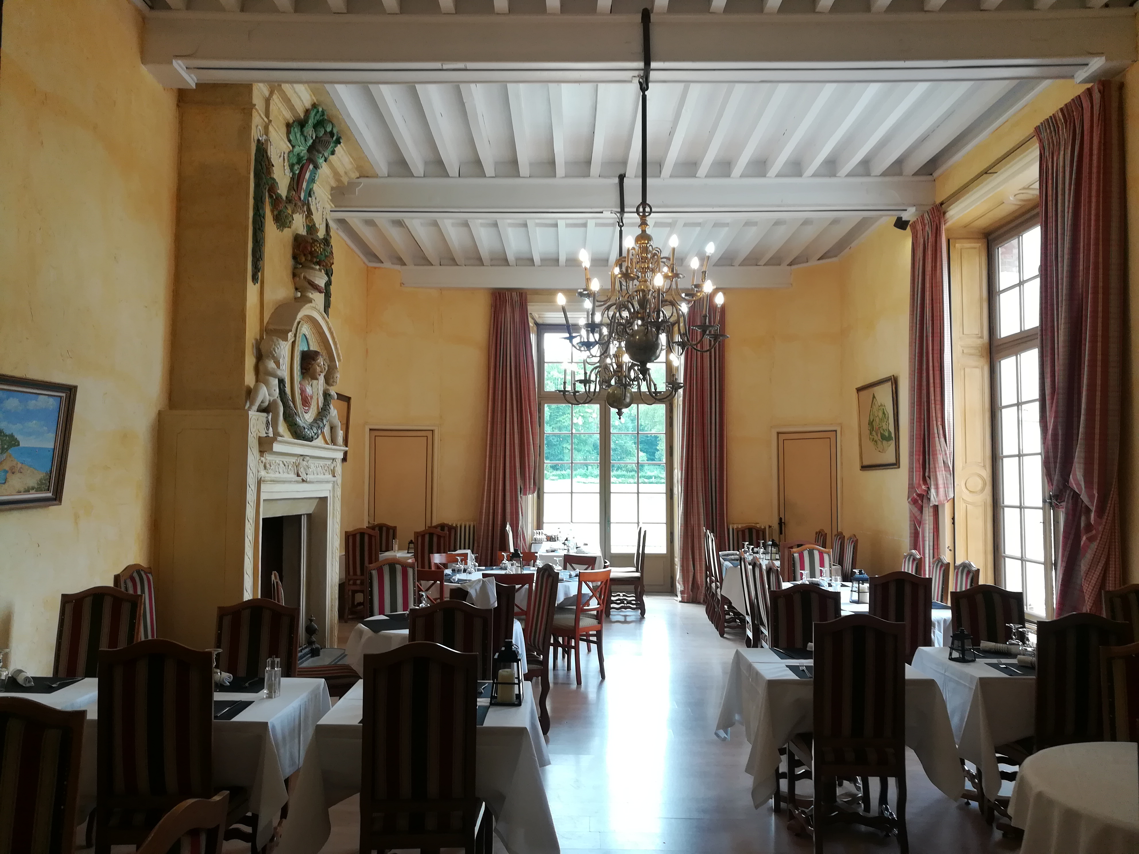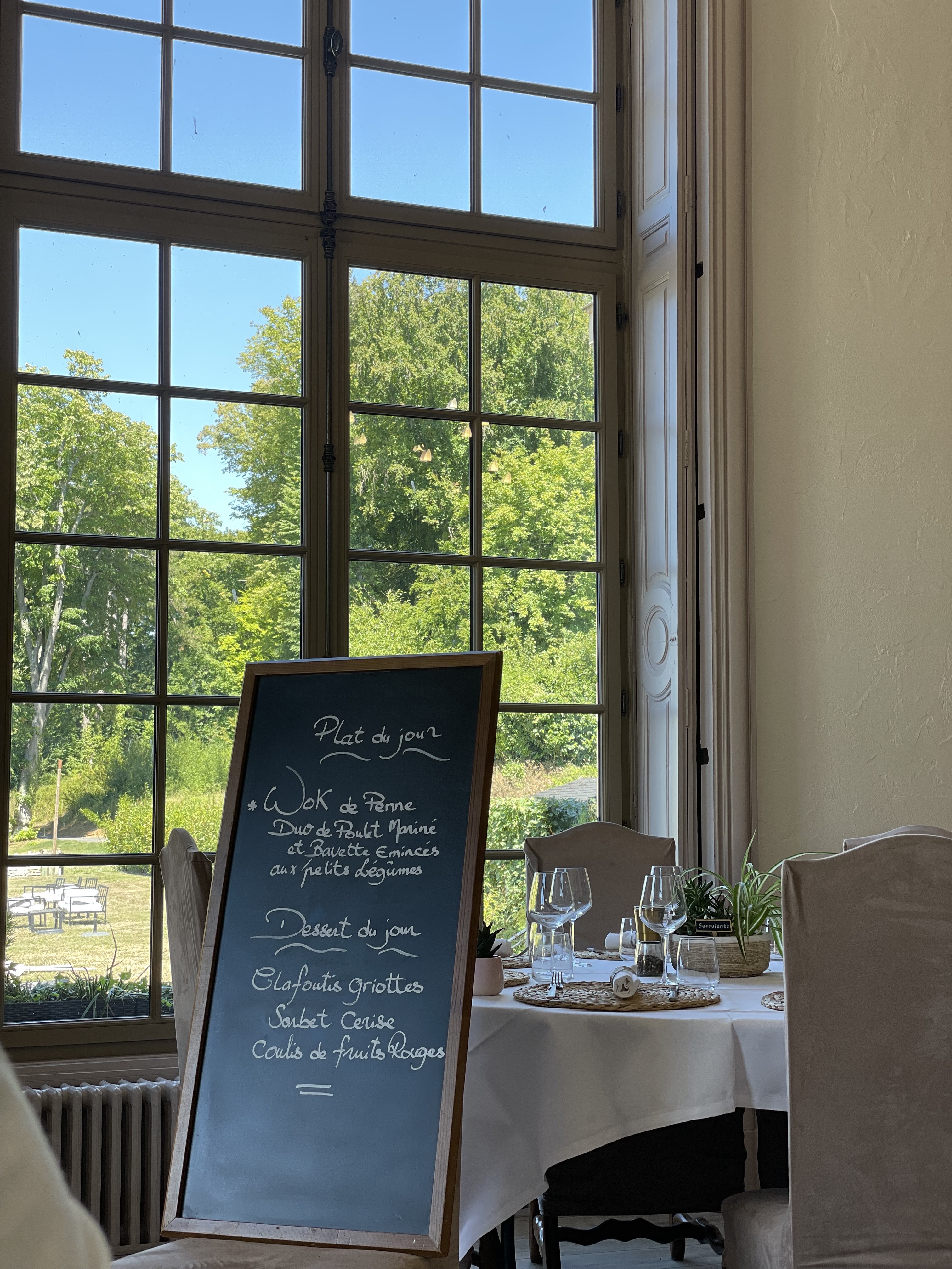 Bonne cuisine dans un cadre châtelain avec vu sur le golf et parc du château.