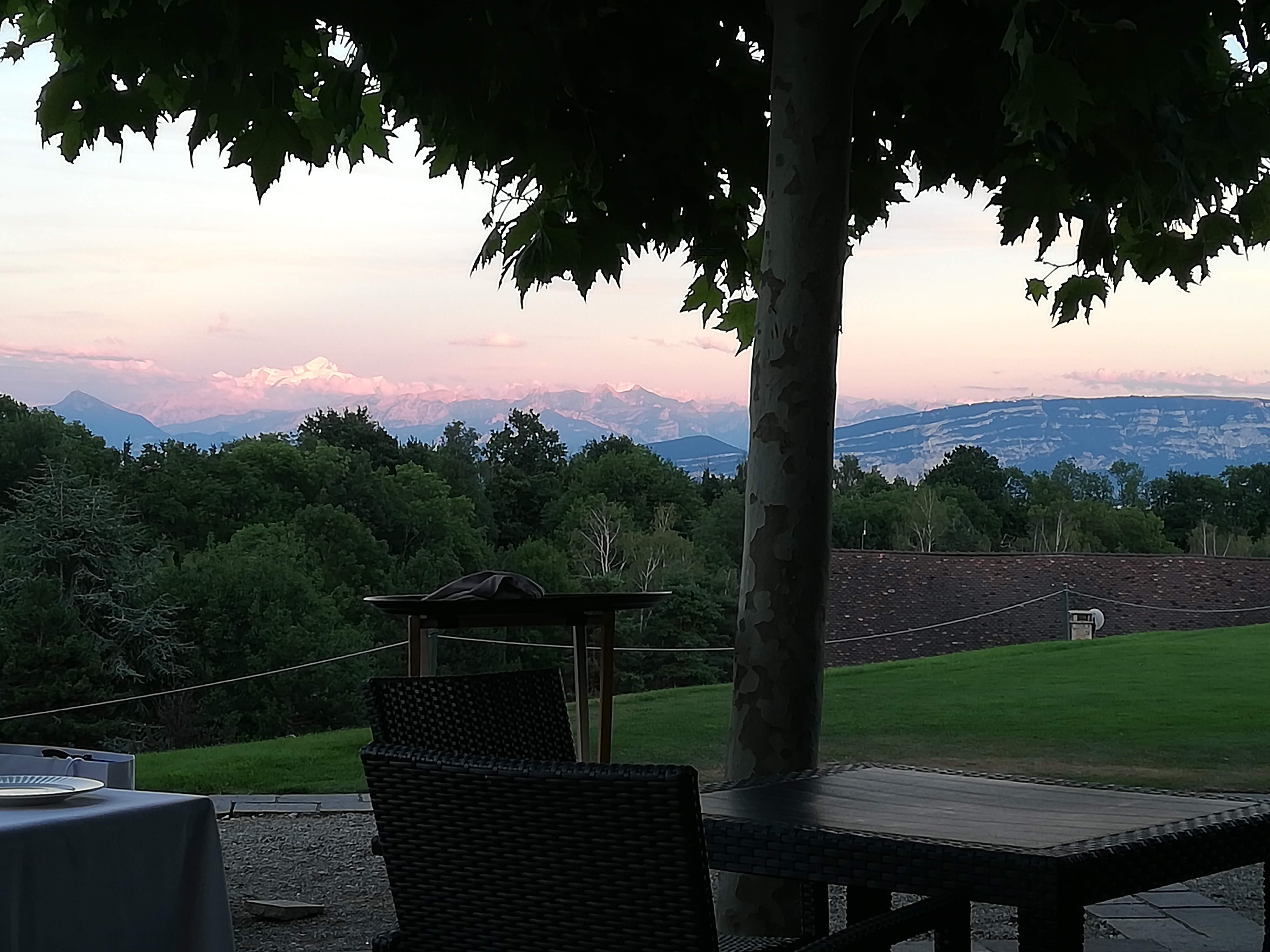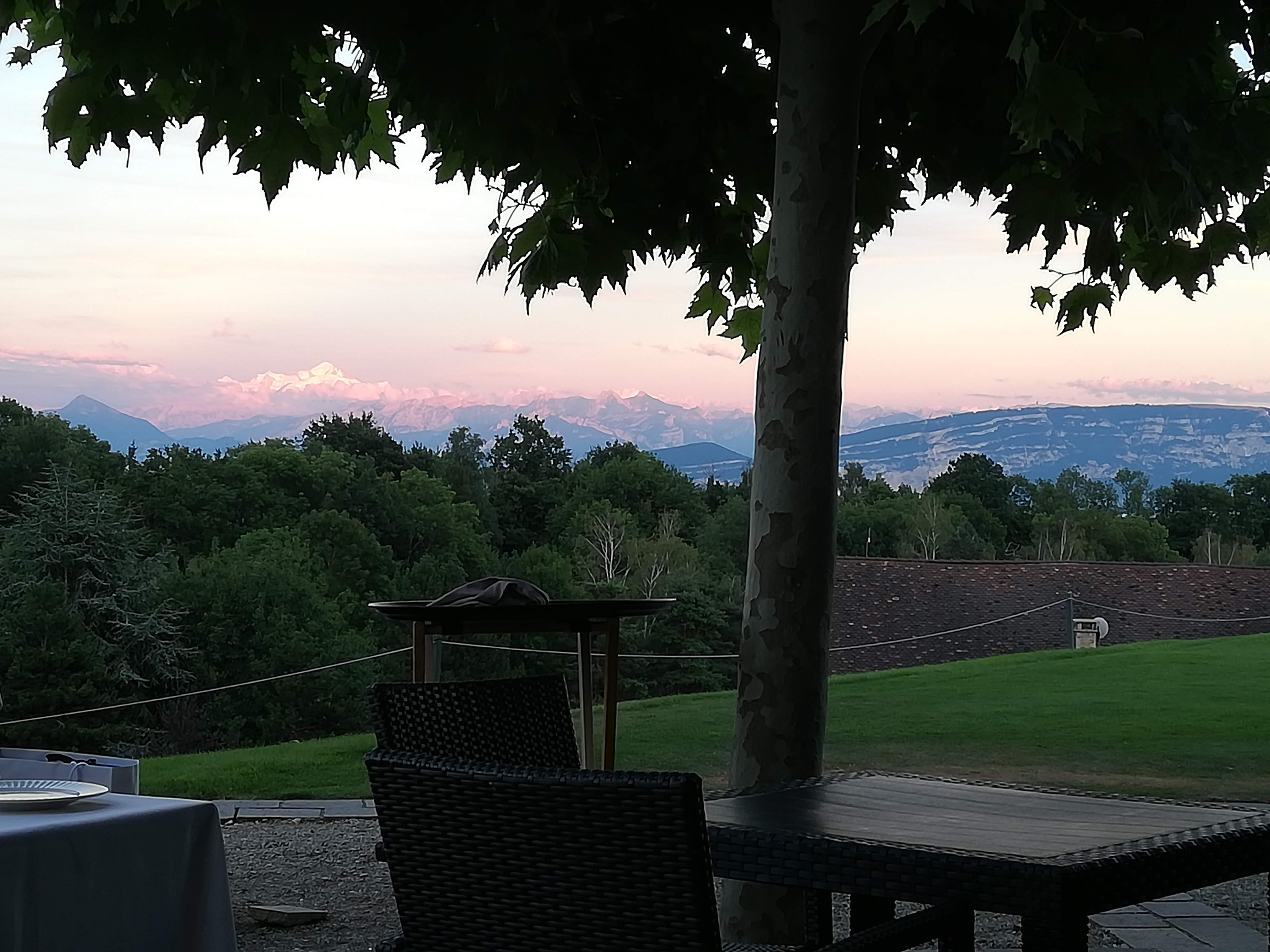Cadre magnifique ! Surtout le soir avec le couché de soleil sur le Mont Blanc. Une sensation unique d'être privilégiez. Repas très bon avec des prix abordables ! Serveurs à l'écoute.