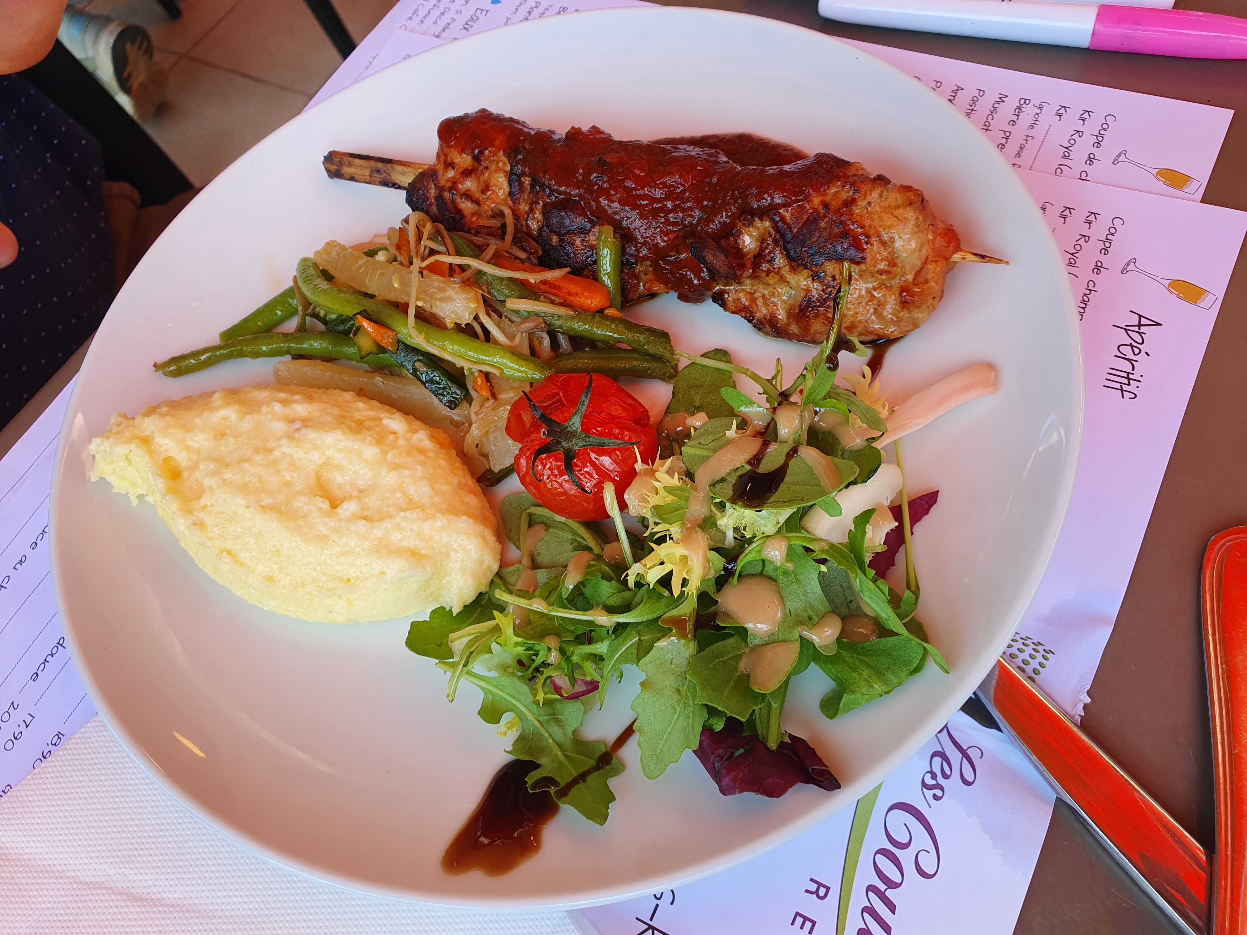 après une partie sous la pluie, quel surprise de se régaler avec des plats simples et bons, à conseiller