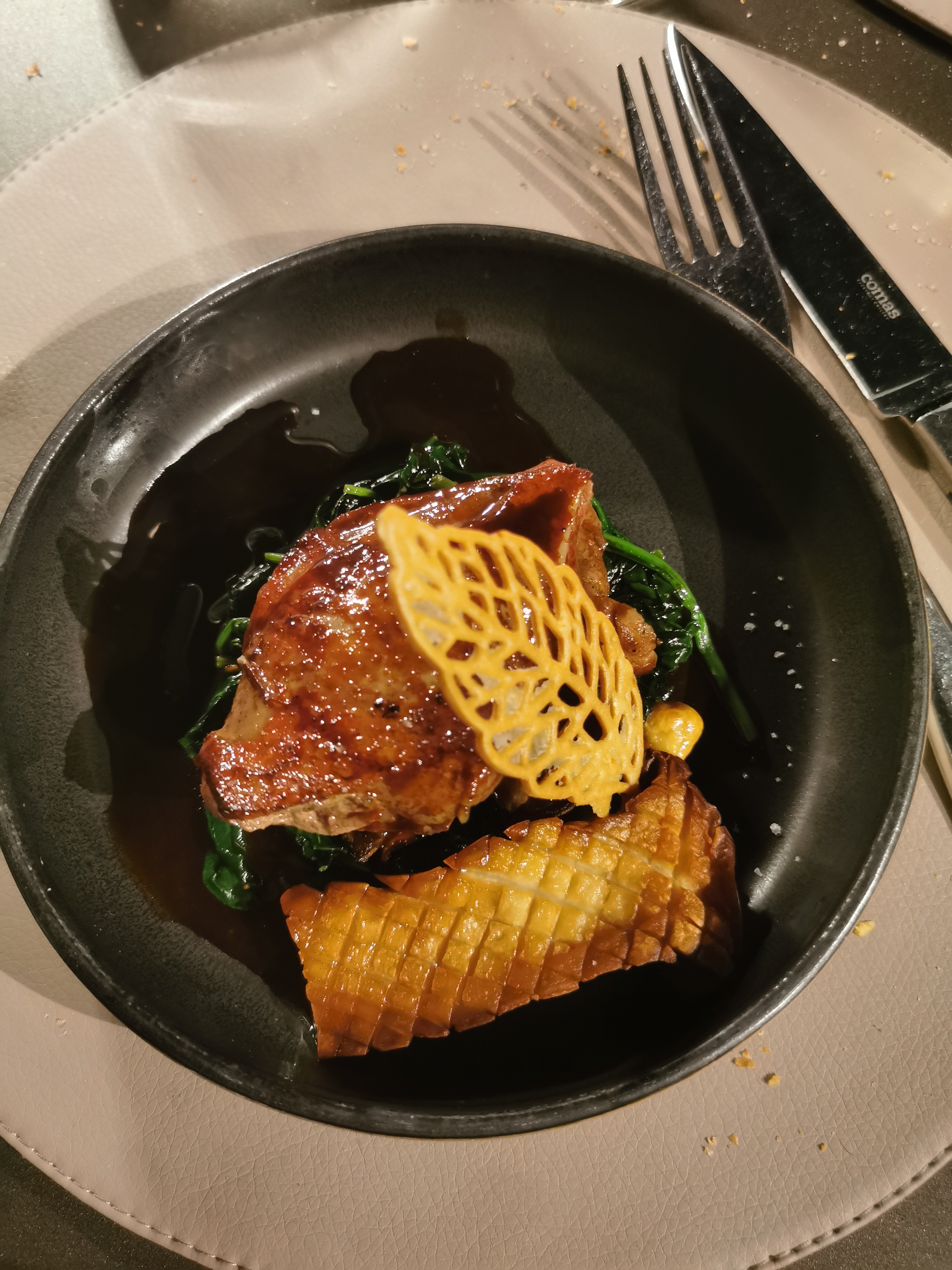 Entrée/plat/dessert, le canard sous différents formes, très gouté, agréables saveurs, et le service est très bien