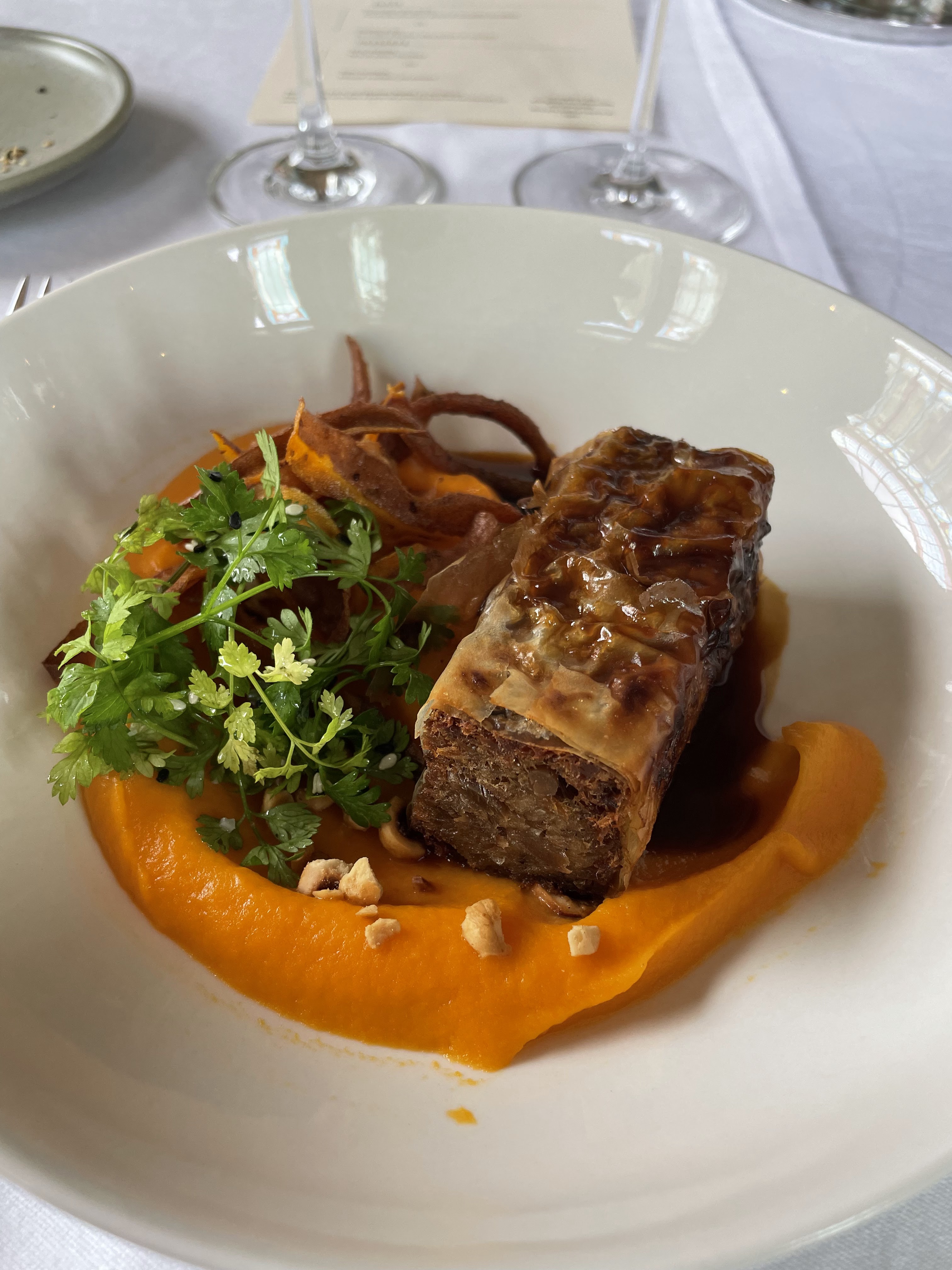 Le restaurant est absolument magnifique et ne peut pas accueillir beaucoup de monde, il est donc relativement calme et paisible. La vue vers l'extérieur est magnifique ! La nourriture était délicieuse et les serveurs ont fourni d'excellentes recommandations sur la température des plats et les accords mets et vins. Nous n'avons pas commandé de dessert car nous étions rassasiés mais ils nous ont apporté quelques petites friandises. Une merveilleuse expérience pour notre première nuit à l’hôtel.