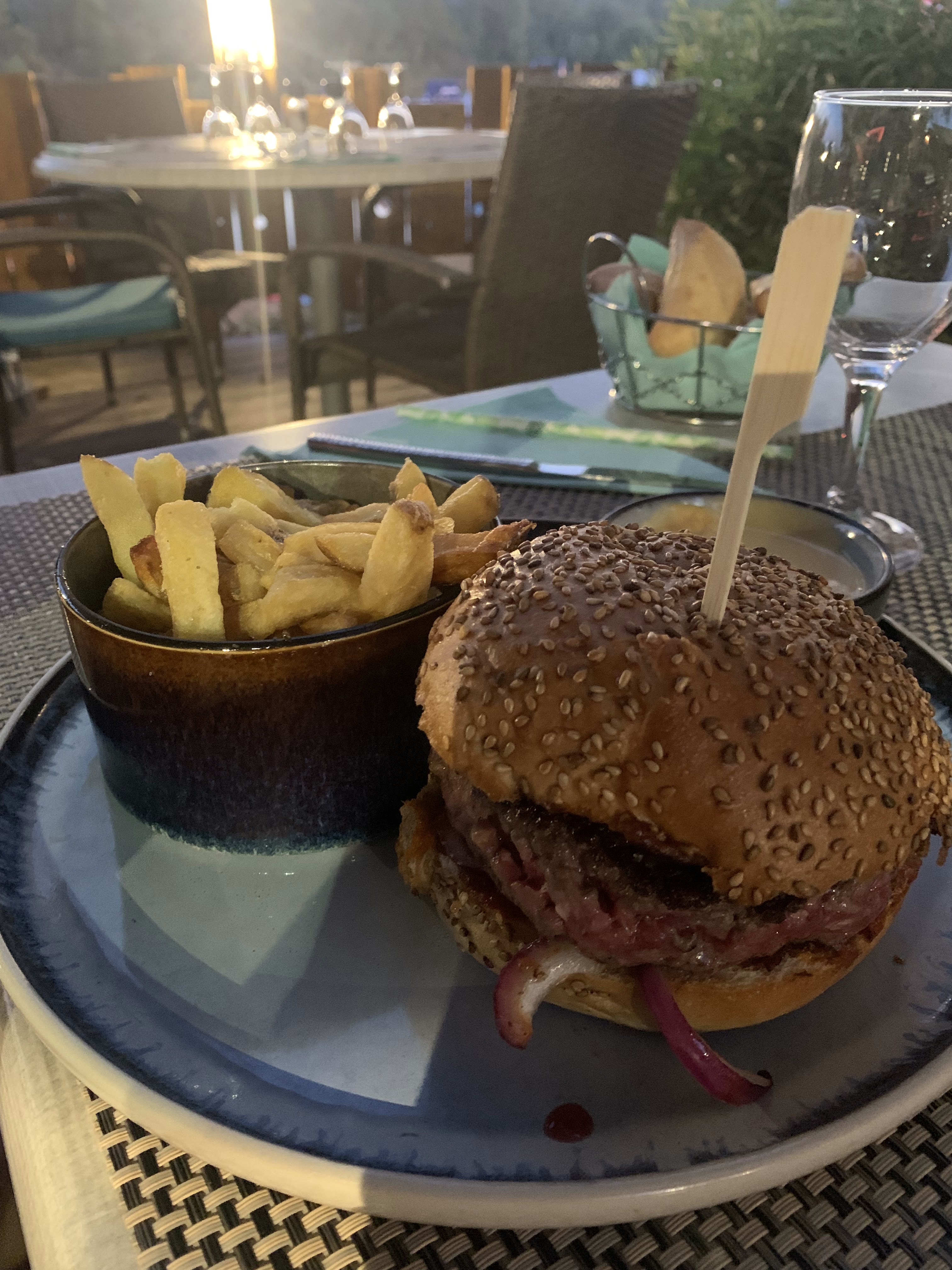 Très déçu ma fille voulait des frites à la place du boulghour mais la serveuse nous a dit qu'il ne pouvait pas les frites seraient facturés en plus. Une deuxième serveuse nous a confirmé pas très commercial et nous a dit que c'était suite à l'inflation. Dommage car le repas est dans l'ensemble correct et me paysage très beau mais nous n'avons pas passé une bonne soirée. Nous avons pris les desserts ailleurs.