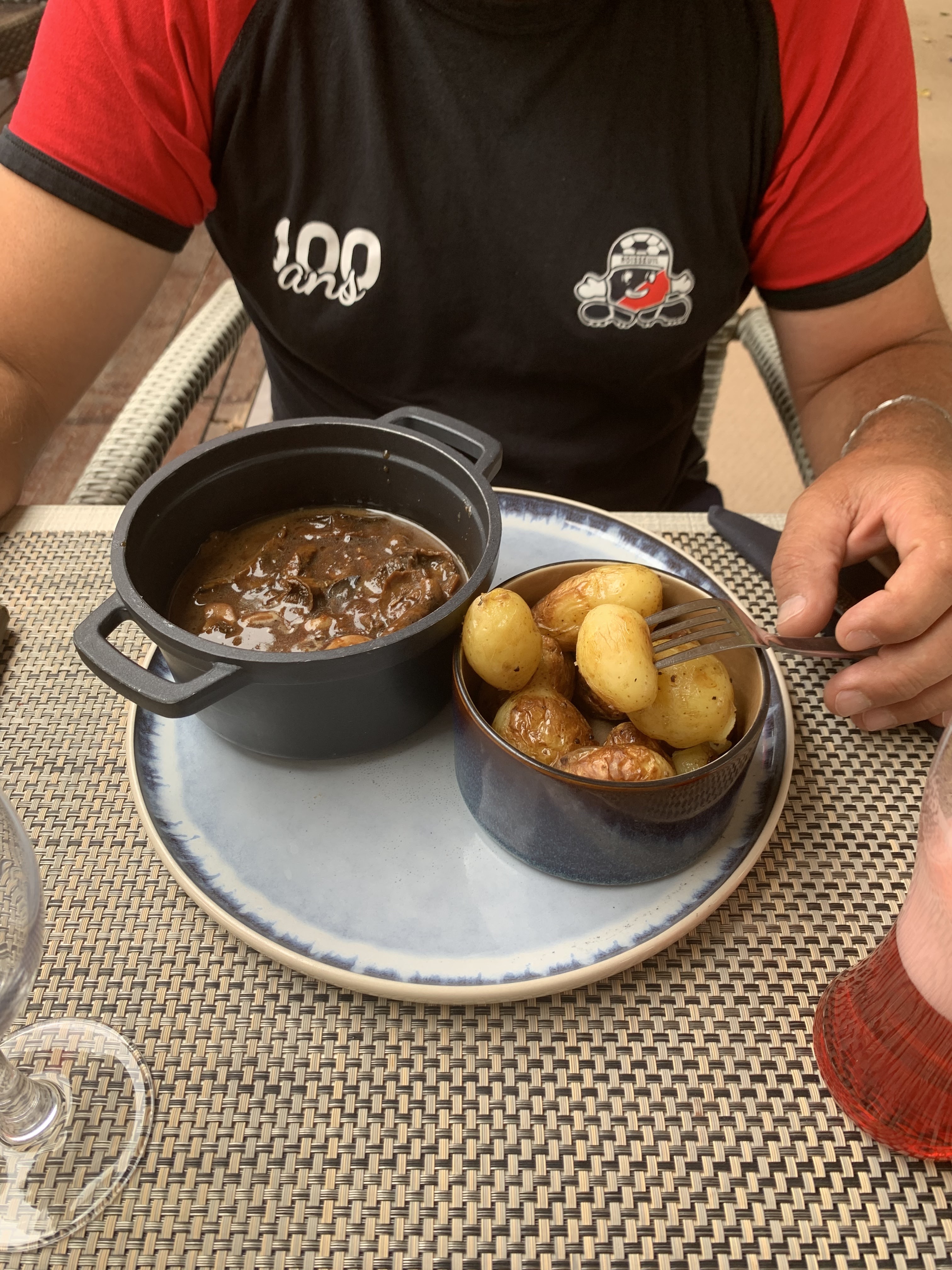 Un repas un peu chaotique : on vous amène d'abord la carte de l'apéro, puis prise de commande des apéro. Ensuite on vous rapporte le menu. Prise de commande du menu. Et on vous apporte apéro et plat en même temps ! Quand au dessert, il nous aura fallu réclamer la carte, puis après 30 minutes d' attente réclamer le dessert commandé (qui nous sera servi ensuite, avec la mention je vous l'ai fait préparer en express 🤔) La cuisine est agréable (heureusement !) mais un peu cher à mon avis à la carte (entrecôte frite 32 euros) Cafe 2€40