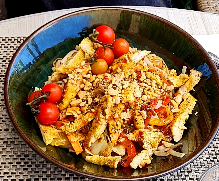 Salade thaï très bonne, foie gras avec oignons confit très bon, fondant au chocolat très bon, crumble aux pommes aussi. Cadre très agréable à l'extérieur