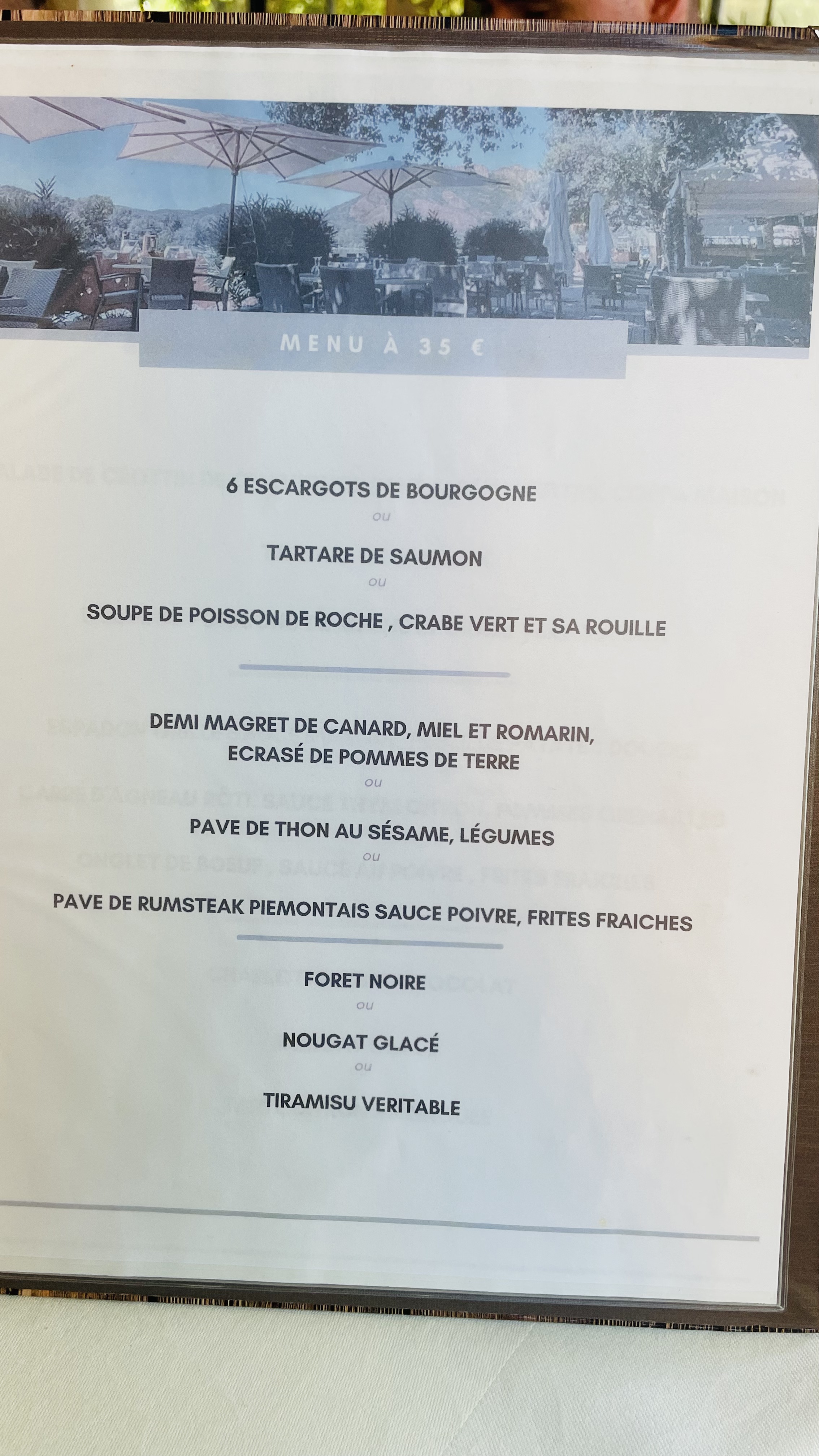 Très bel endroit avec une vue superbe sur le Rocher de Roquebrune. La formule du jour est un excellent rapport qualité prix, les prix à la carte un peu plus élevés.