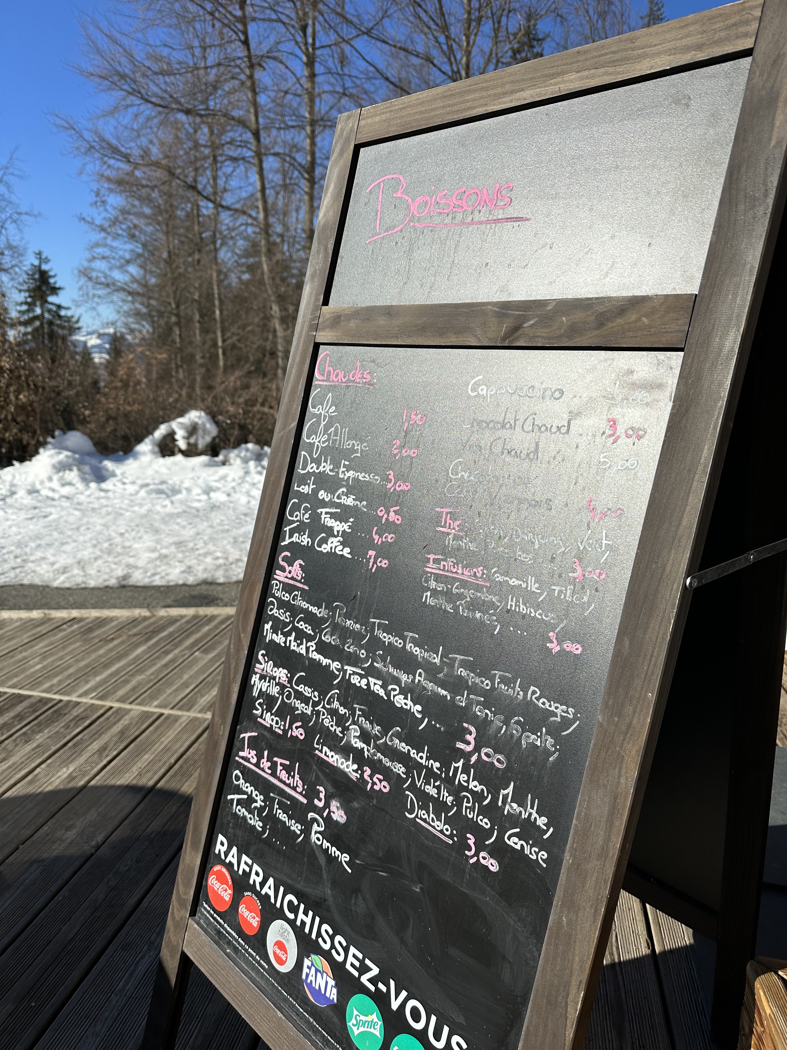 Bon service, personnel agréable, magnifique vue sur le Mont Blanc. 3 boissons, 2crepes, un sandwich pour 25€.