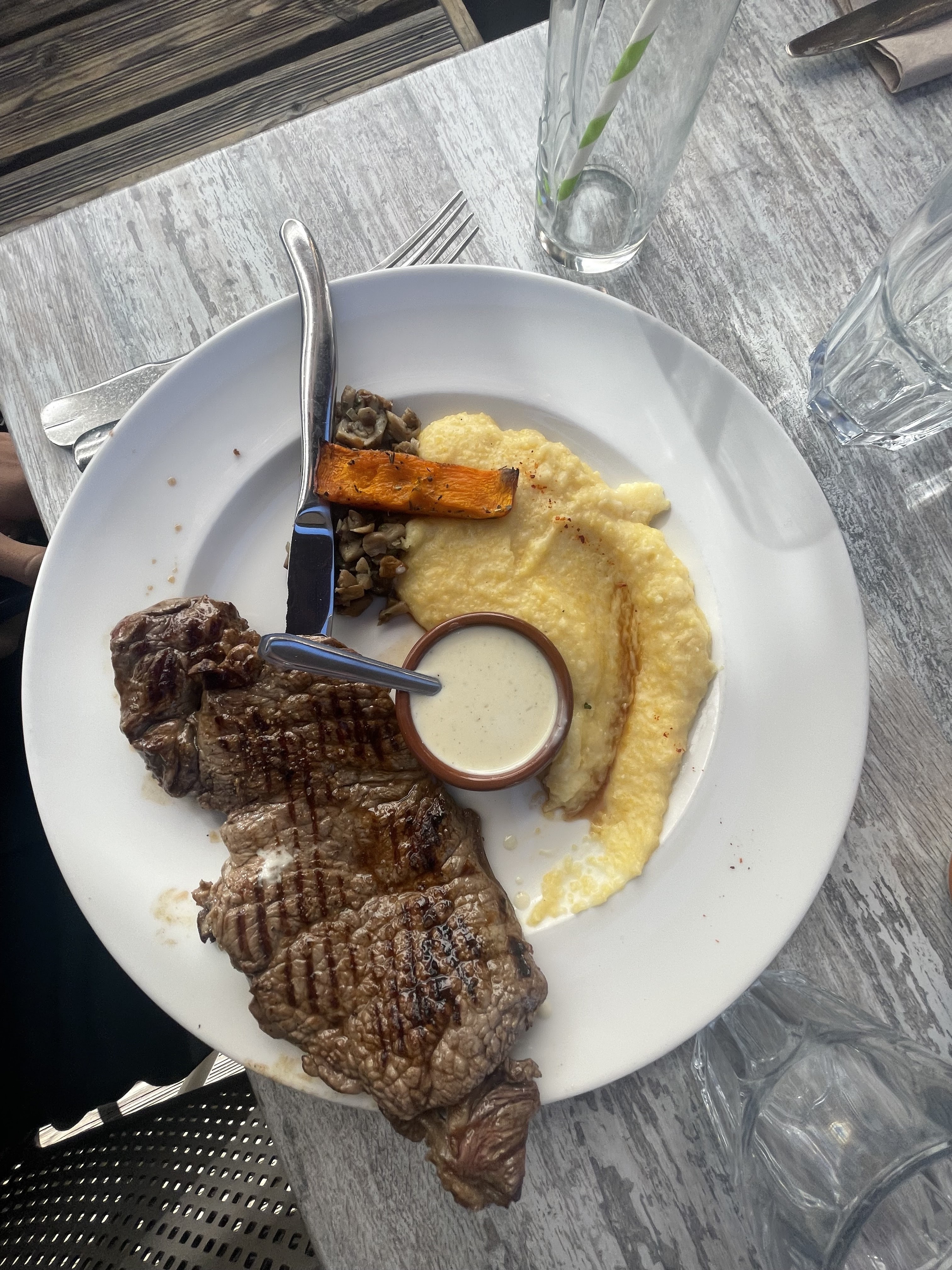 Cadre magnifique. Le restaurant étant complet, nous nous sommes donc dirigés vers le snack. Les 2 femmes étant plus que débordées nous avons attendu de longues minutes. La nourriture était bonne mais avec un goût de trop peu.
