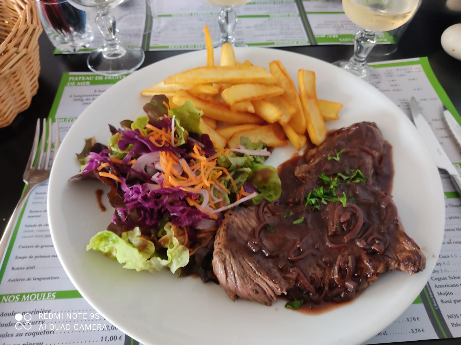 Simple et très bon. Nous avons pris les moules servies généreusement les 2 sauces étaient excellentes curry et roquefort. Les desserts également au diapason avec gaufres maisons bonne chantilly et chocolat chaud maison aussi (ça change des mauvaises chantilly et du chocolat industriel en flacon...bravo). Pour moi café liégeois avec là aussi la petite touche avec le kaluha au fond : bravo bis ! ça fait la différence. Tout ça pour 20 euros par tête. On y va pas pour le.decor ni la vue mais ce qu il y a dans l.assiette.