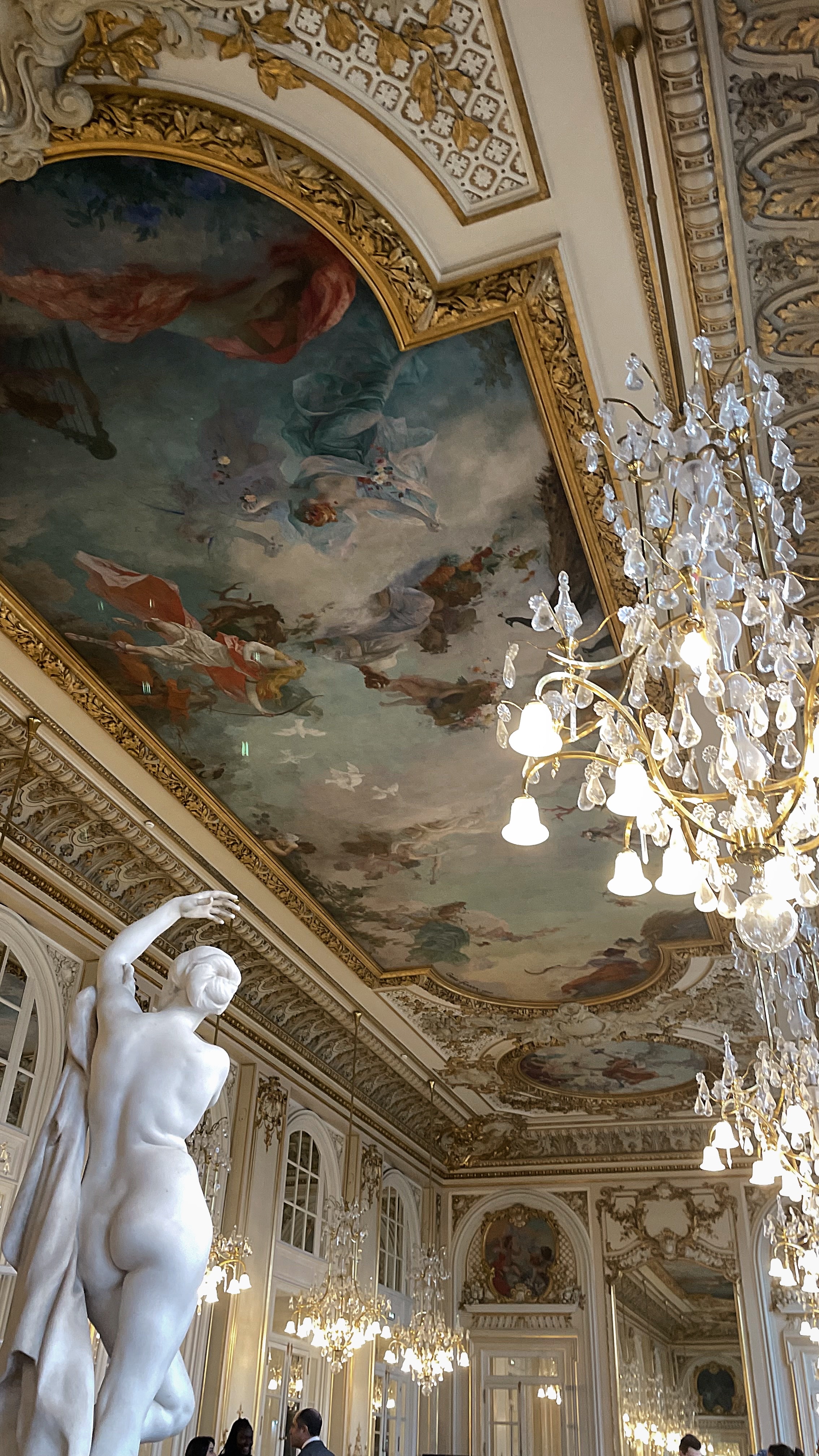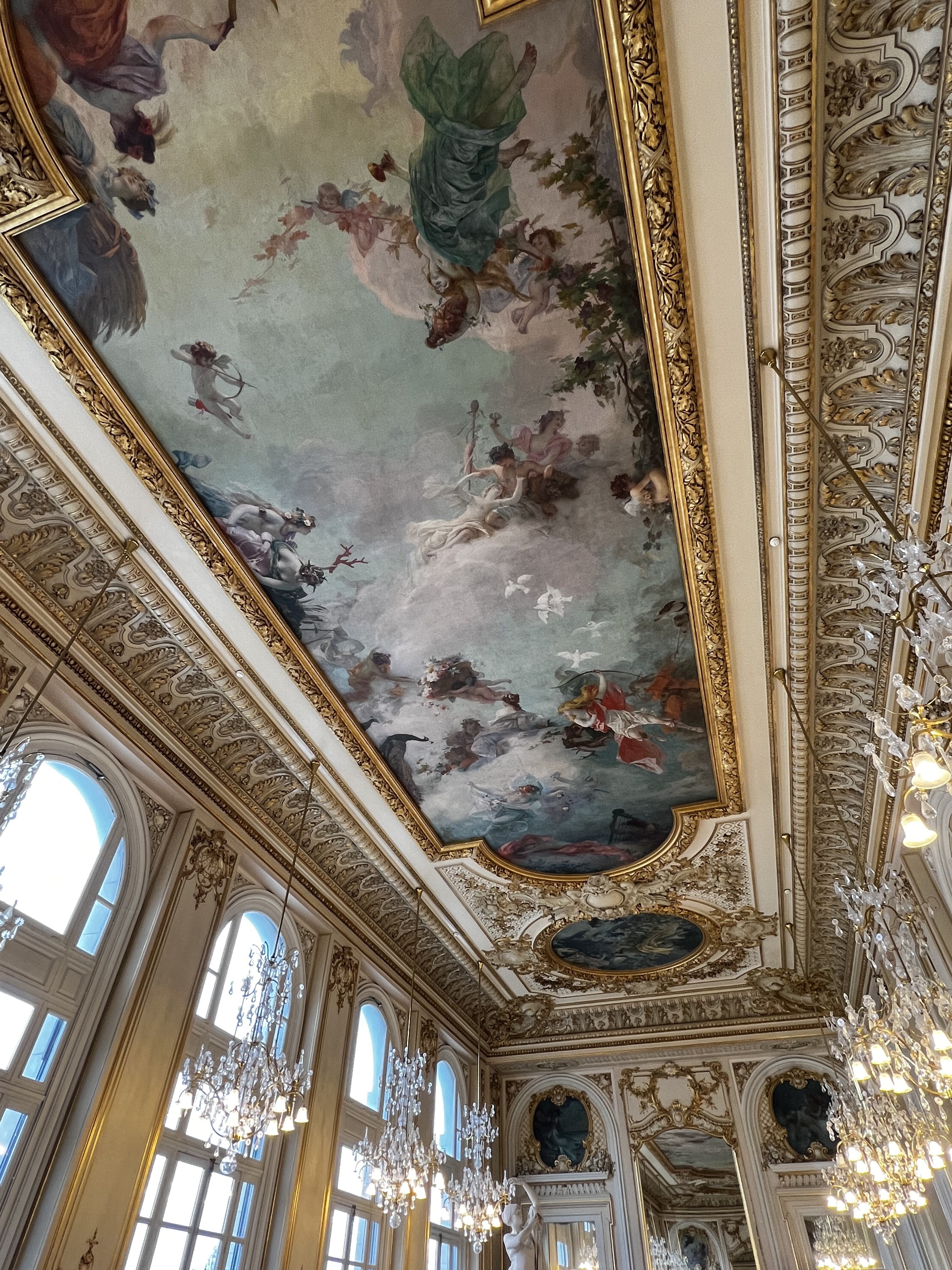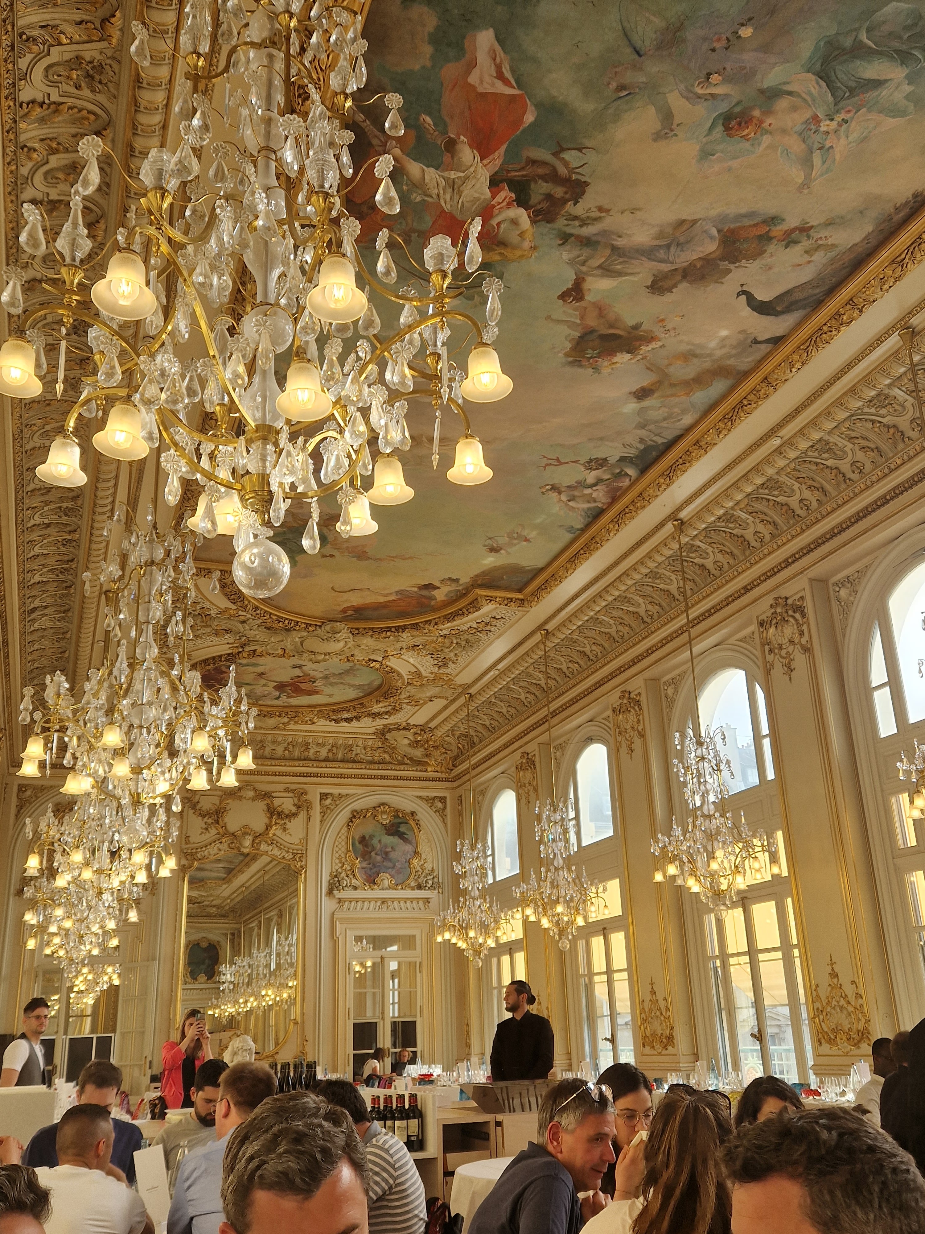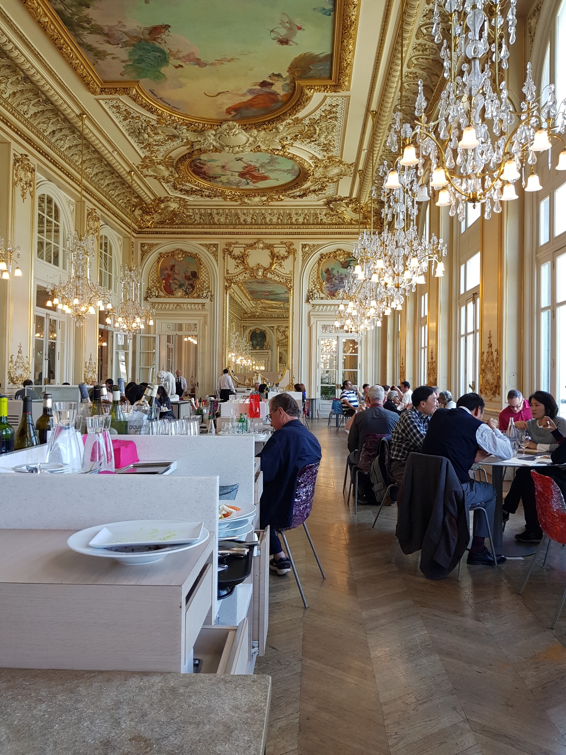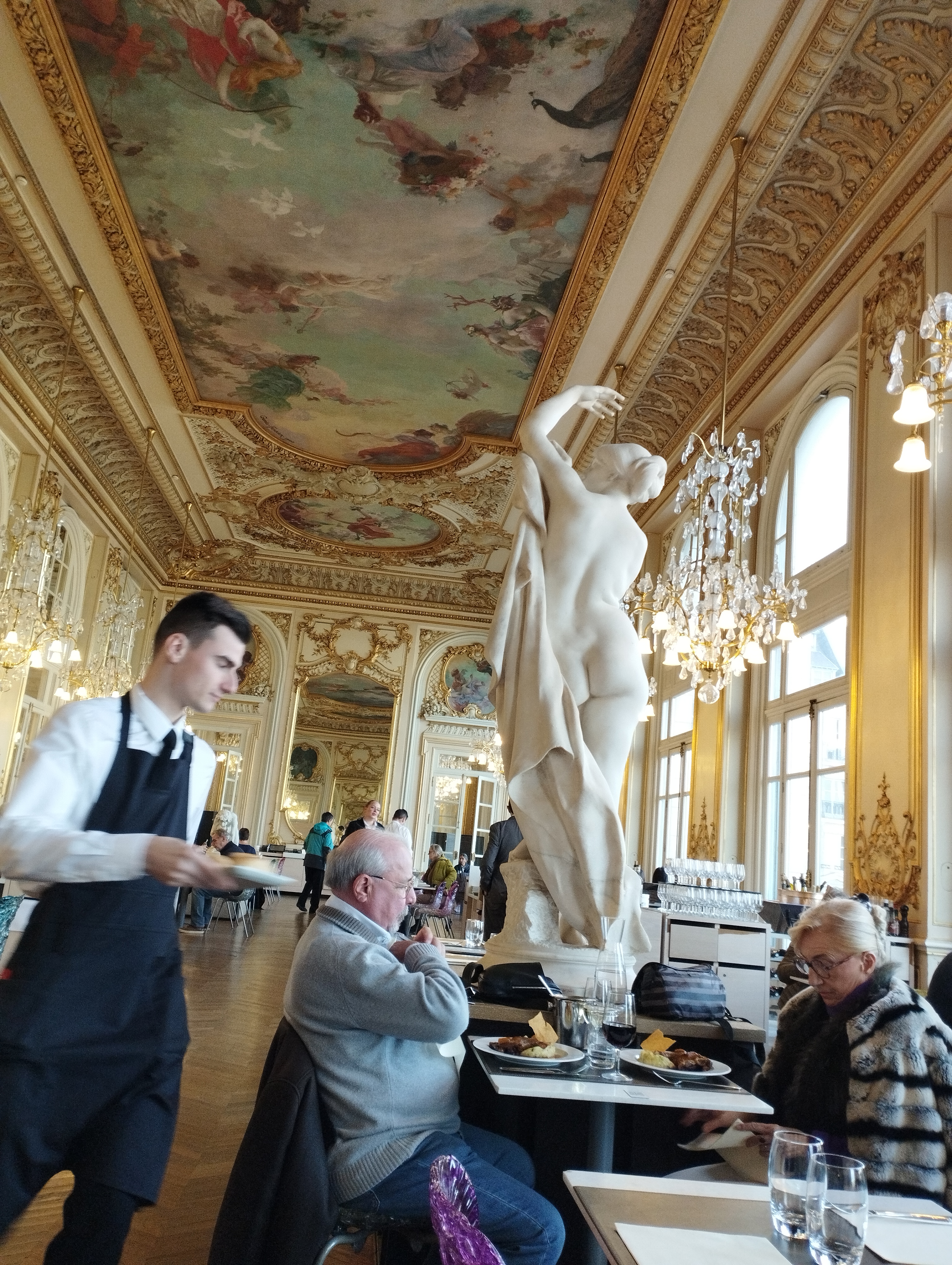 Après avoir passé l’après-midi à visiter les expositions temporaire et permanente du musée d’Orsay, nous étions affamés. En rejoignant la sortie, nous sommes passés devant le restaurant du Musée au premier étage. Nous avons toute suite été impressionnés par la salle classée Monument historique… lustres étincelants, plafonds peints et dorures… La cuisine est traditionnelle française, nous avons choisi le gratin de ravioles aux truffes, un délice ! Le service est agréable.