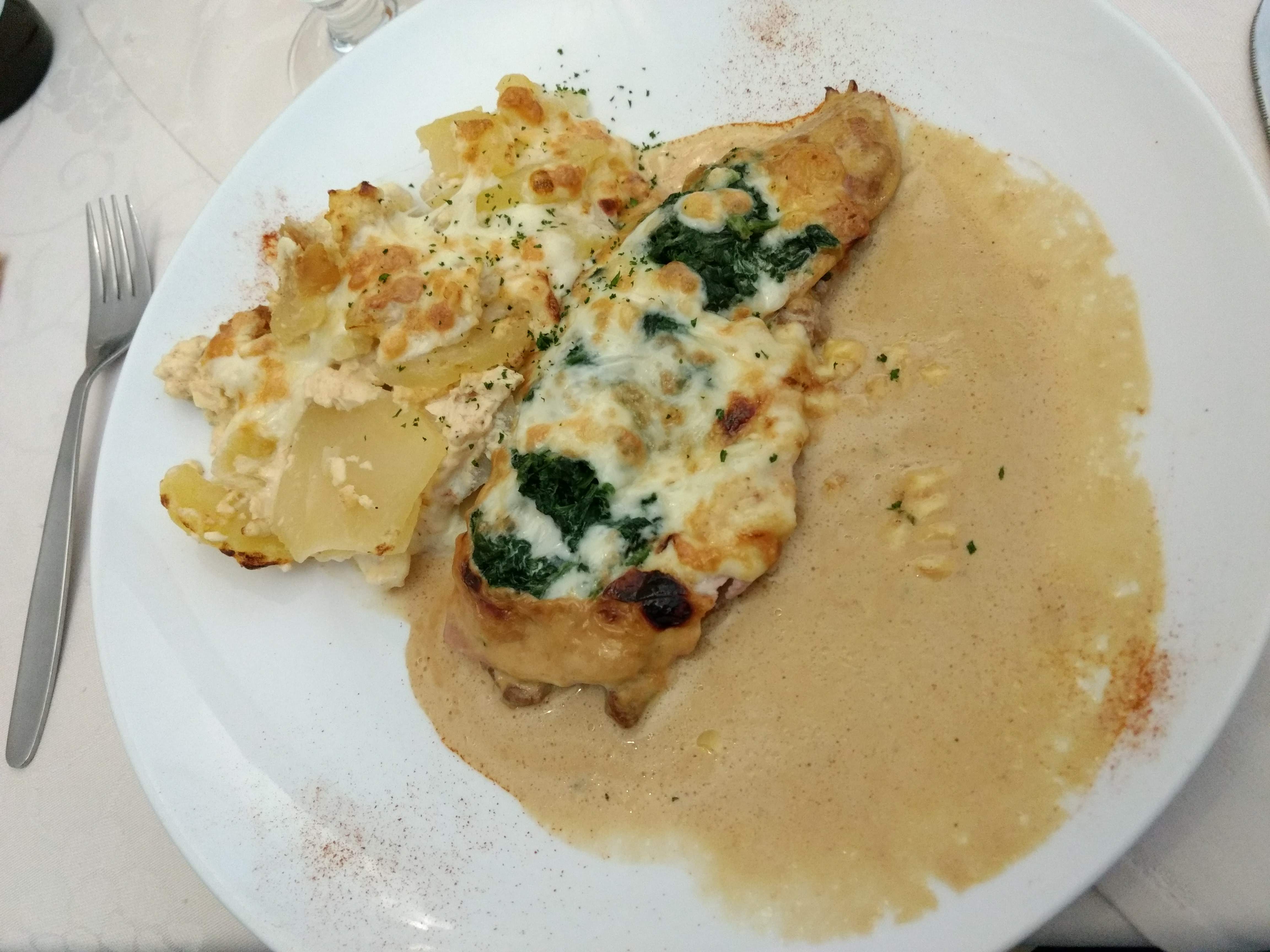 Ambiance un peu austère malgré un joli cadre. Les plats sont servis sur des assiettes froides comme l'escalope milanaise.le rapport qualité prix est moyen.desserts corrects.