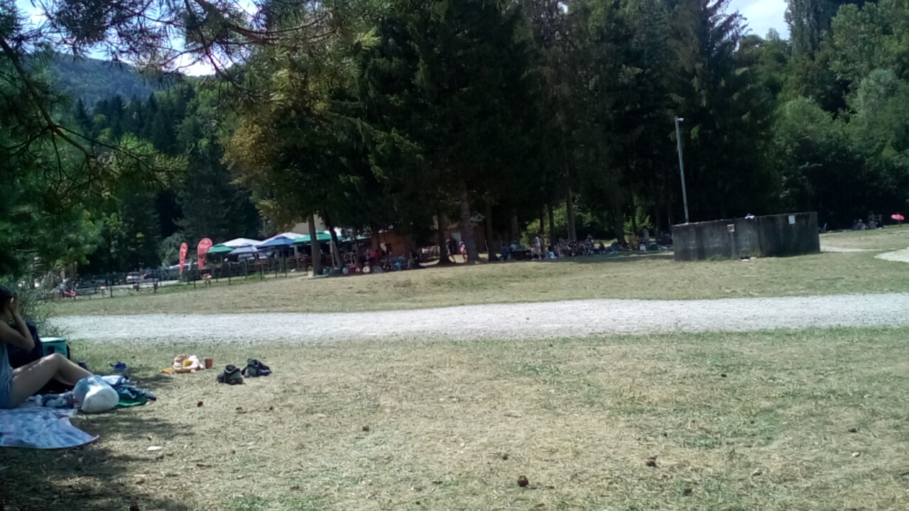 Un point d eau avec toboggan et une belle vue sur les montagnes environnantes mais évidemment beaucoup de monde . Belle ambiance conviviale malgré tous ce monde ...Belle découverte