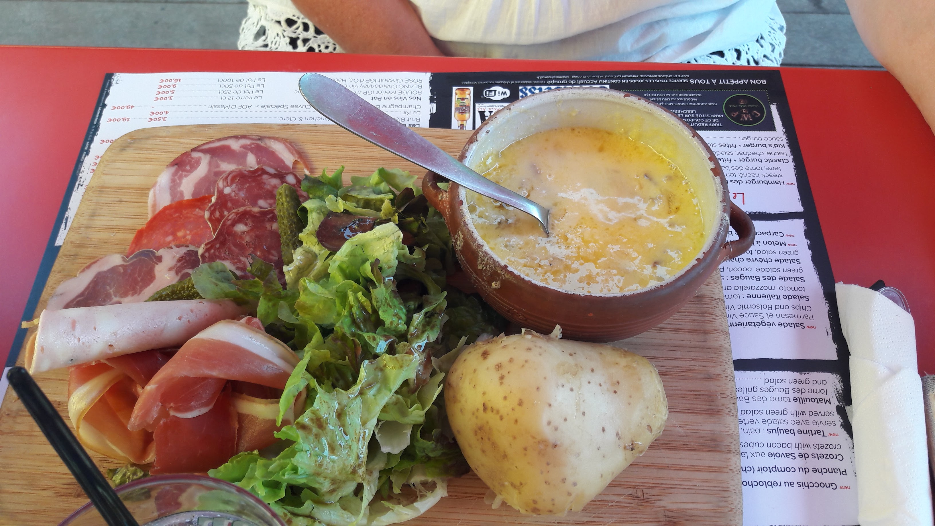 Alors service sa va amabilité sa va pour se qui est de l assiette charcuterie à banir charcuterie passer elle a des point blanc dessus le fromage moisi à banir. Salade des bauges rien à manger pour le prix .le seul bon point est le petit jeune en serveur qui est au top ( le petit brun ) à ki j ai laisser un pourboir😉.Heureusemebt qu ils ont fait un jeste commercial .