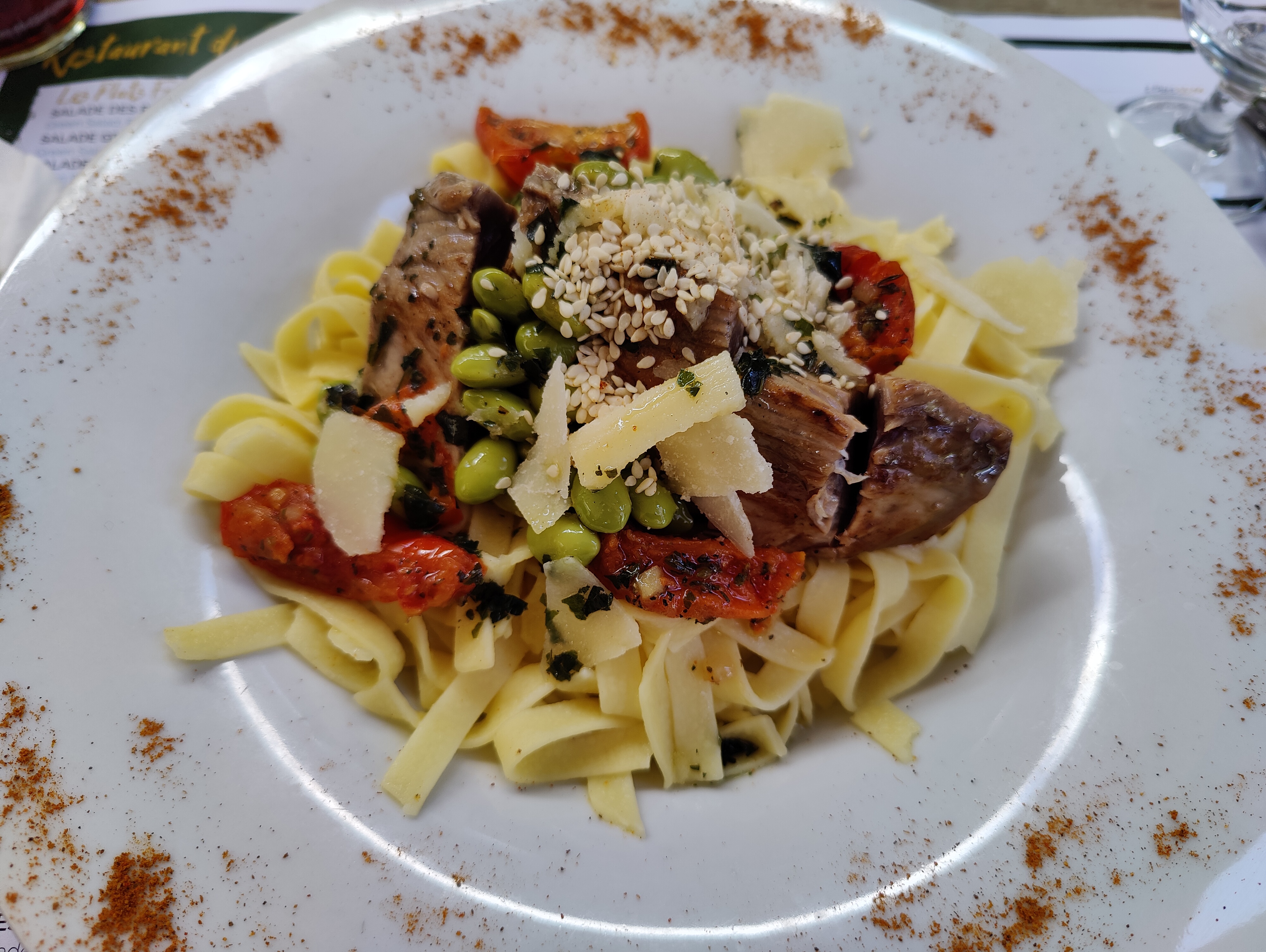 Repas agréable sur la terrasse ombragée. Service relativement rapide vu le nombre de table à servir.