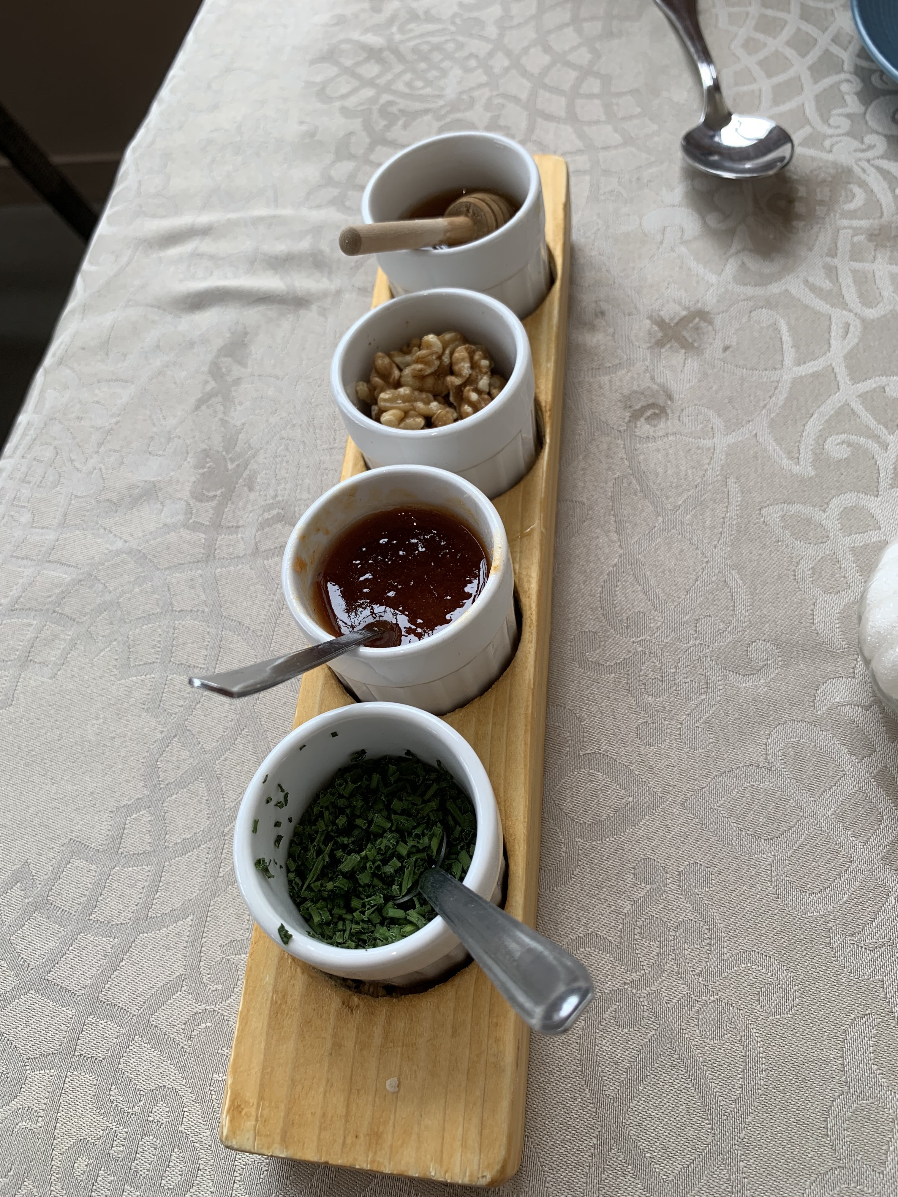 Des mises en Bouches, tout en douceur, une entrée pintade, plein de délicatesse, des St Jacques: gourmandes, un fromage blanc et un dessert a vous de découvrir ce lieu, je recommande fortement
