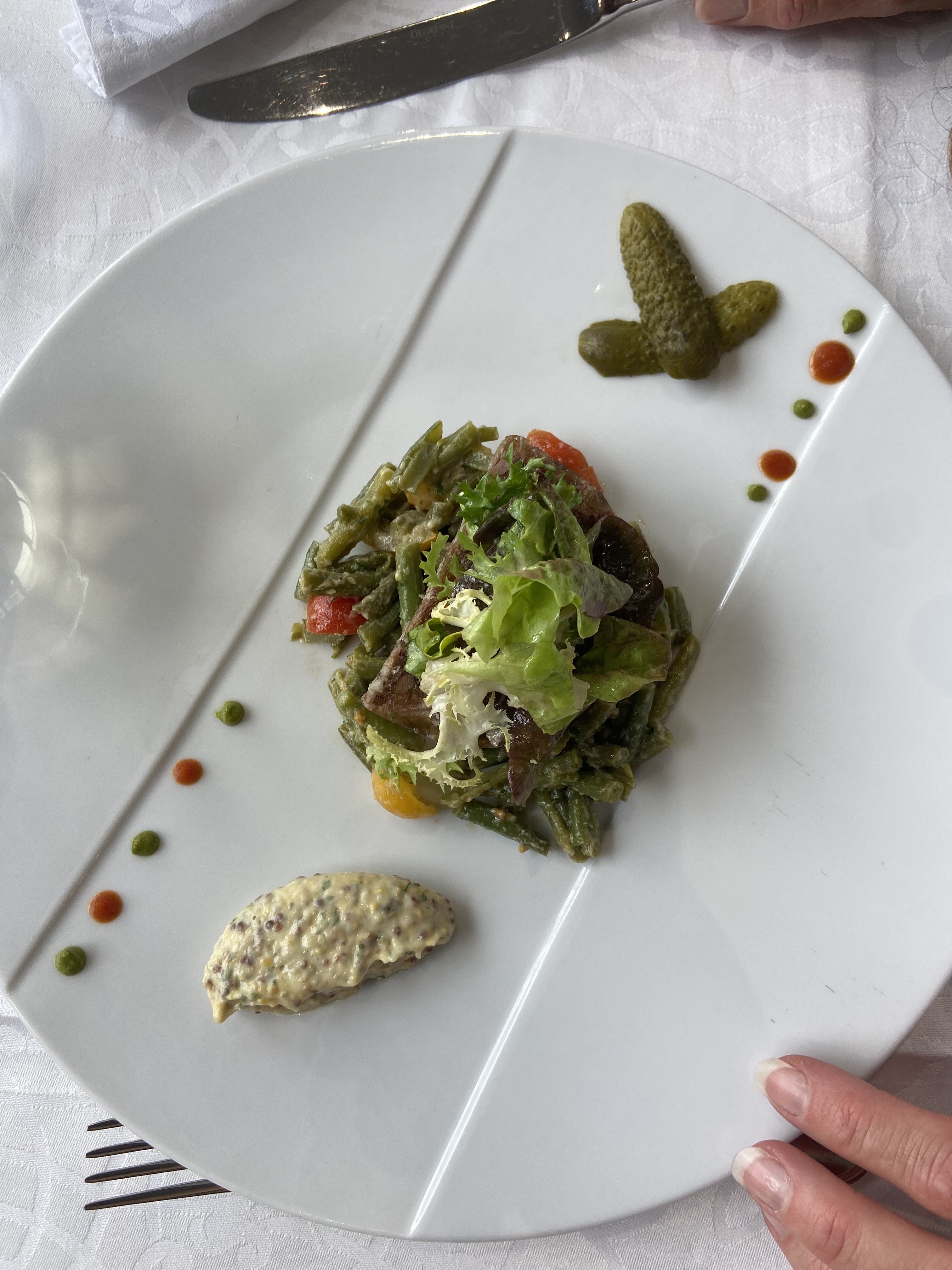 J'ai aimé la salle sous une véranda en bordure de Saône avec le soleil couchant. Côté cuisine; oeuf parfait, cuisses de grenouilles et poulet aux morilles, tout était excellent. Peut-être un peu trop copieux à mon goût. Le service était attentionné. Mon seul bémol est une carte des vins en retrait mais ça n'engage que moi.