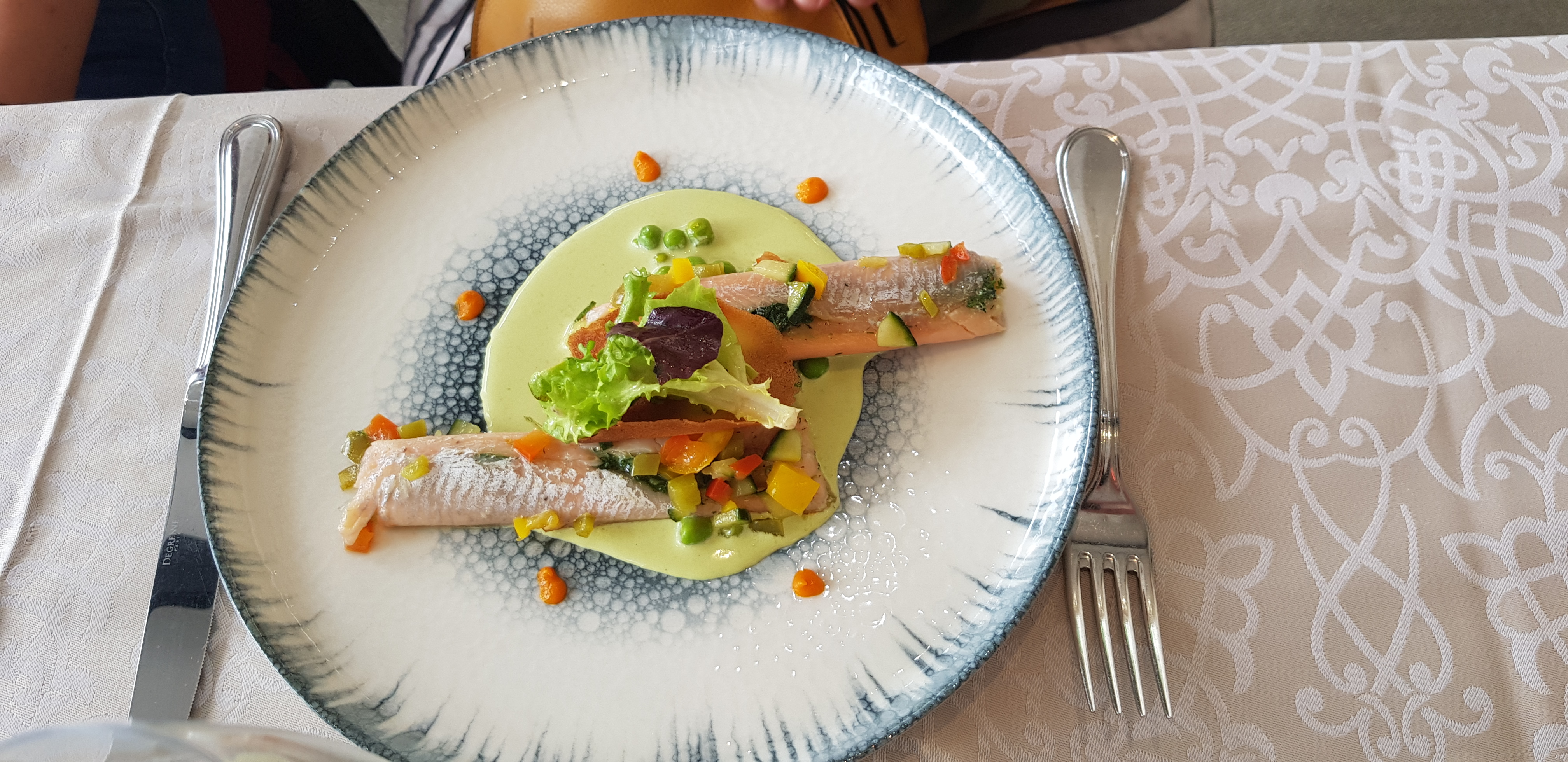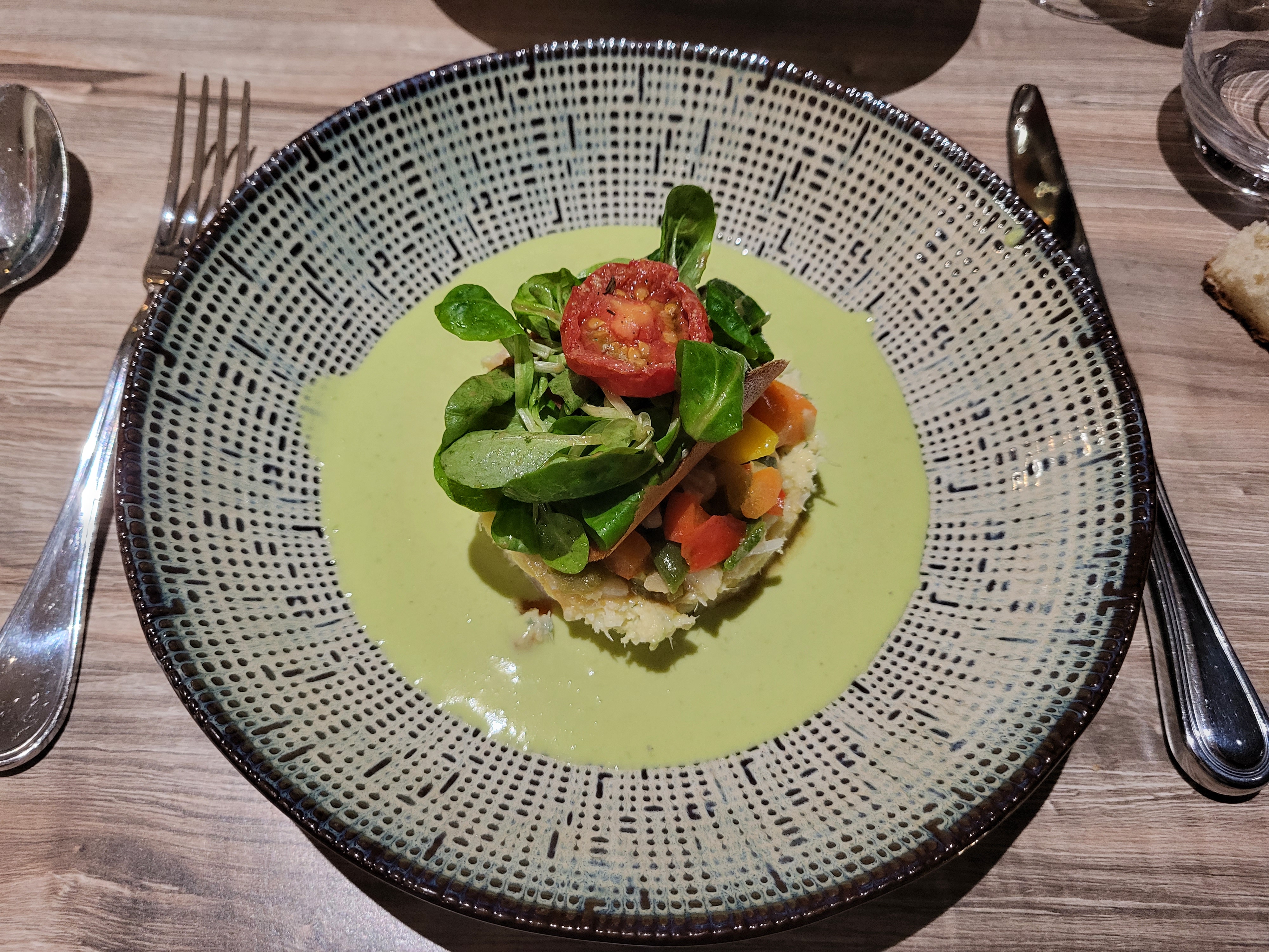 Nous nous sommes régalé avec la tarte aux escargots et les coquilles saint Jacques et gambas par contre désert moyen comme dans beaucoup d endroit il faut aimer les pâtisserie pas de fruits