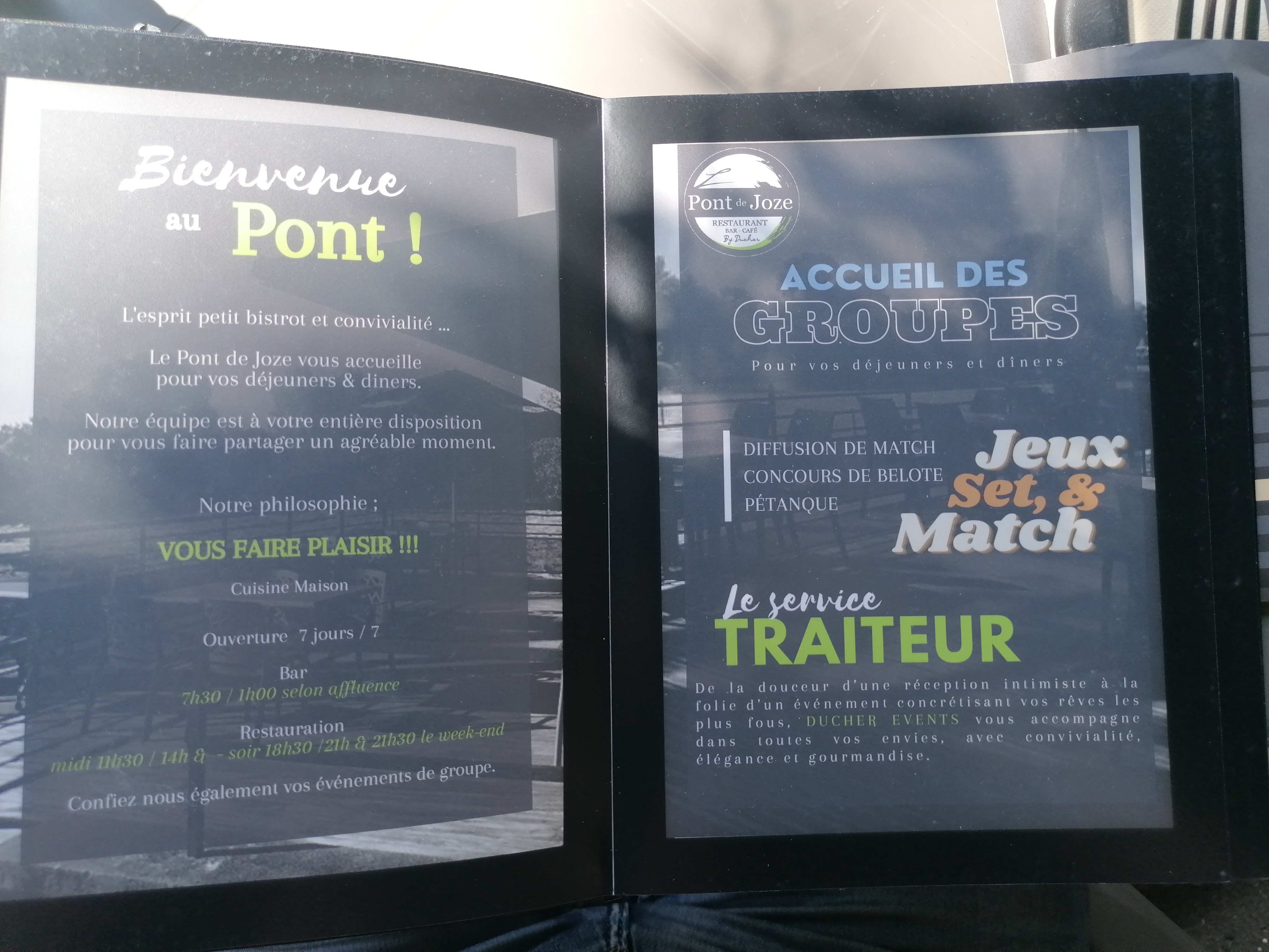 Je connaissais l'Hôtel restaurant du Pont de joze quand c'était peint en jaune et bleu comme sur les photos j'y suis allé manger il y a peu nouveau propriétaire ils ont fait une superbe terrasse qui surplombe les champs c'est super beau en plus on a très bien (on avait choisi des cuisses de grenouille) je recommande